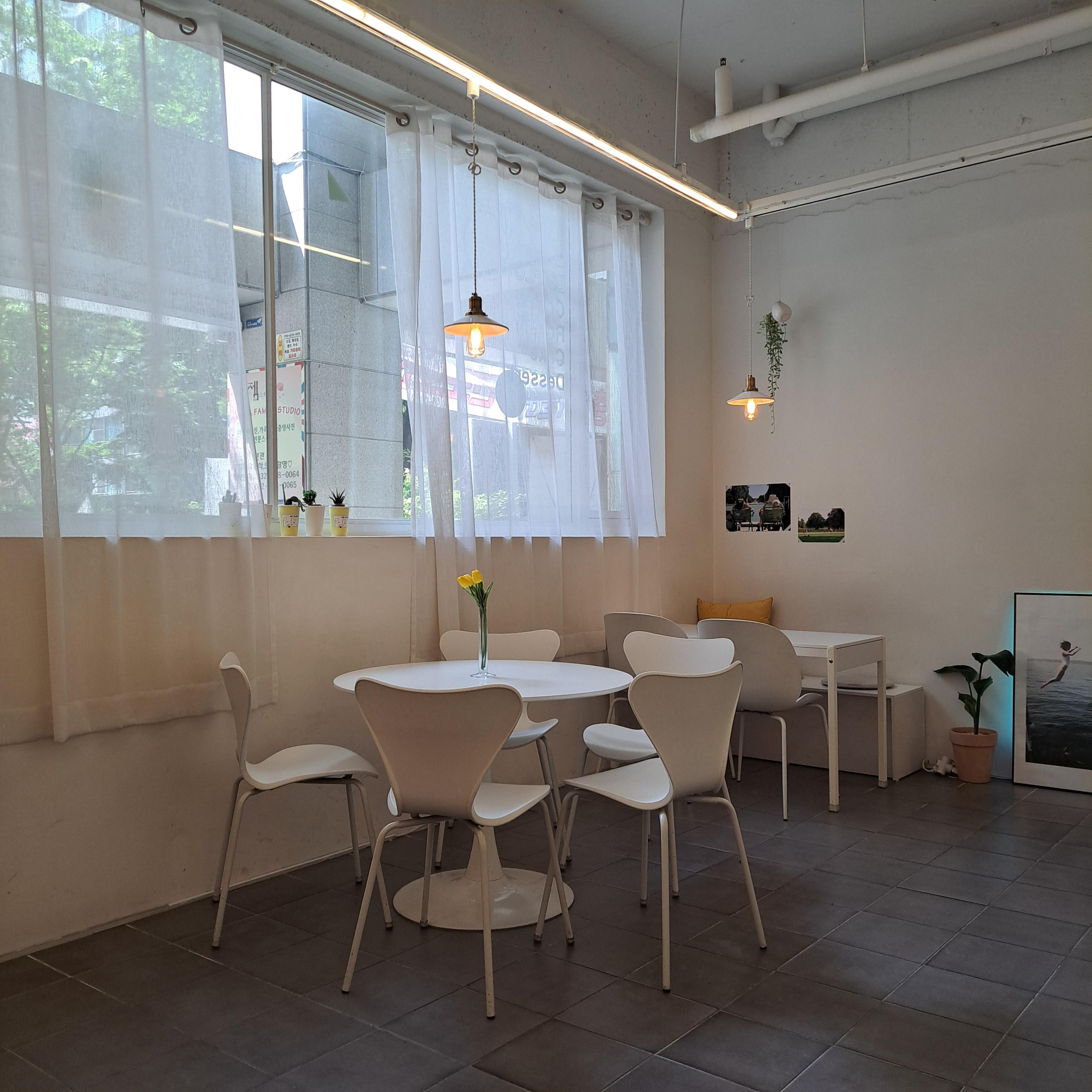 안에 분위기는 좋더라. 붙어있는 포스터는 여름 분위기였는데 계절마다 바꾸지 않을까 싶은 인테리어였음. 전체적인 화이트 분위기.