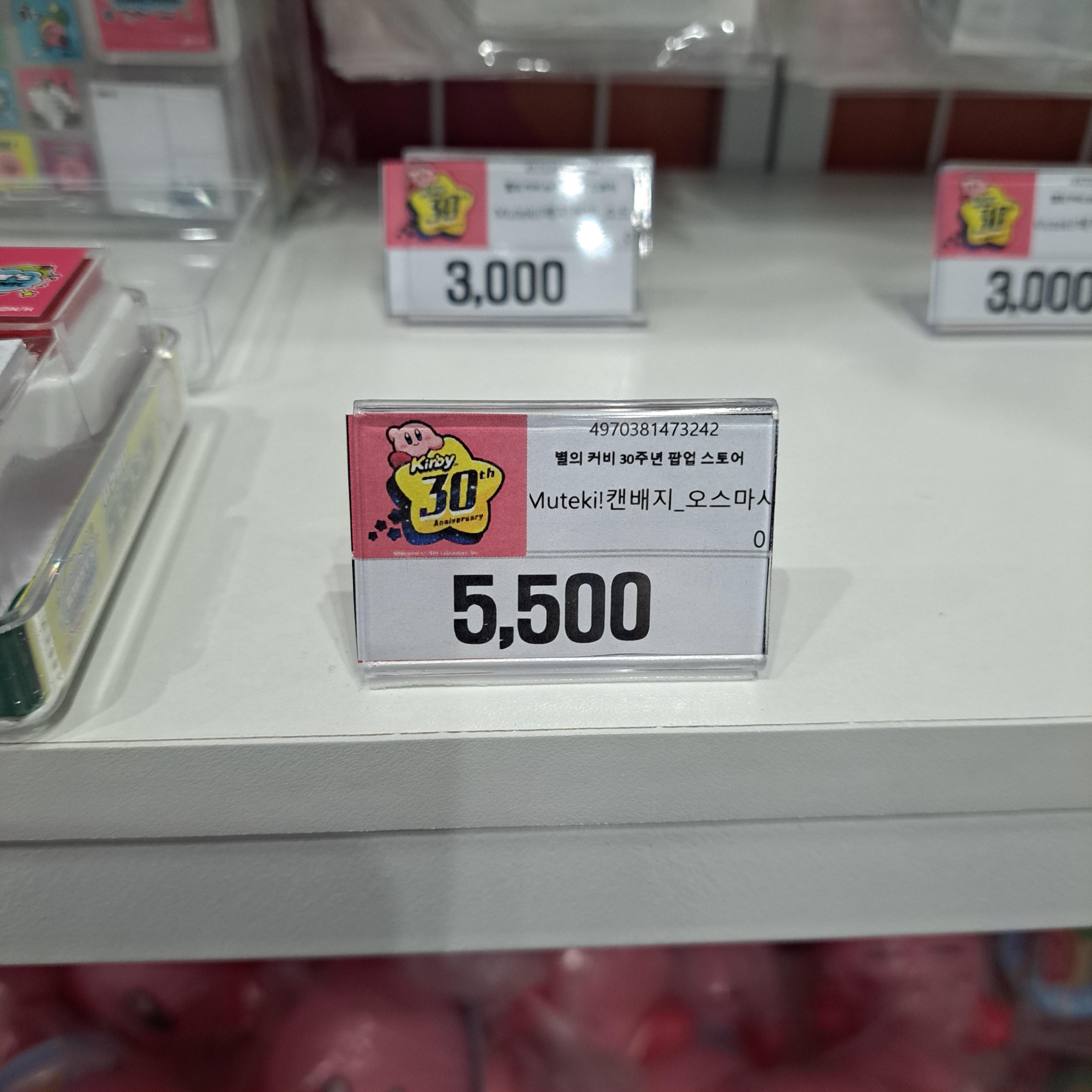 커비 빠찌 - ㅋㅋㅋ 뱃지/뺏찌/뱃찌/캔배지 5천원ㅋ ㅋ 샀다. 귀여워. 이거 클로짓 시리즈라서 스티커 같은걸로 옷 입혀서 소드 커비 등등으로 커스텀할 수 있더라. 어떤 점원이 커스텀해서 옷에 달고 다니더라 ㅋㅋ 완전 귀여워