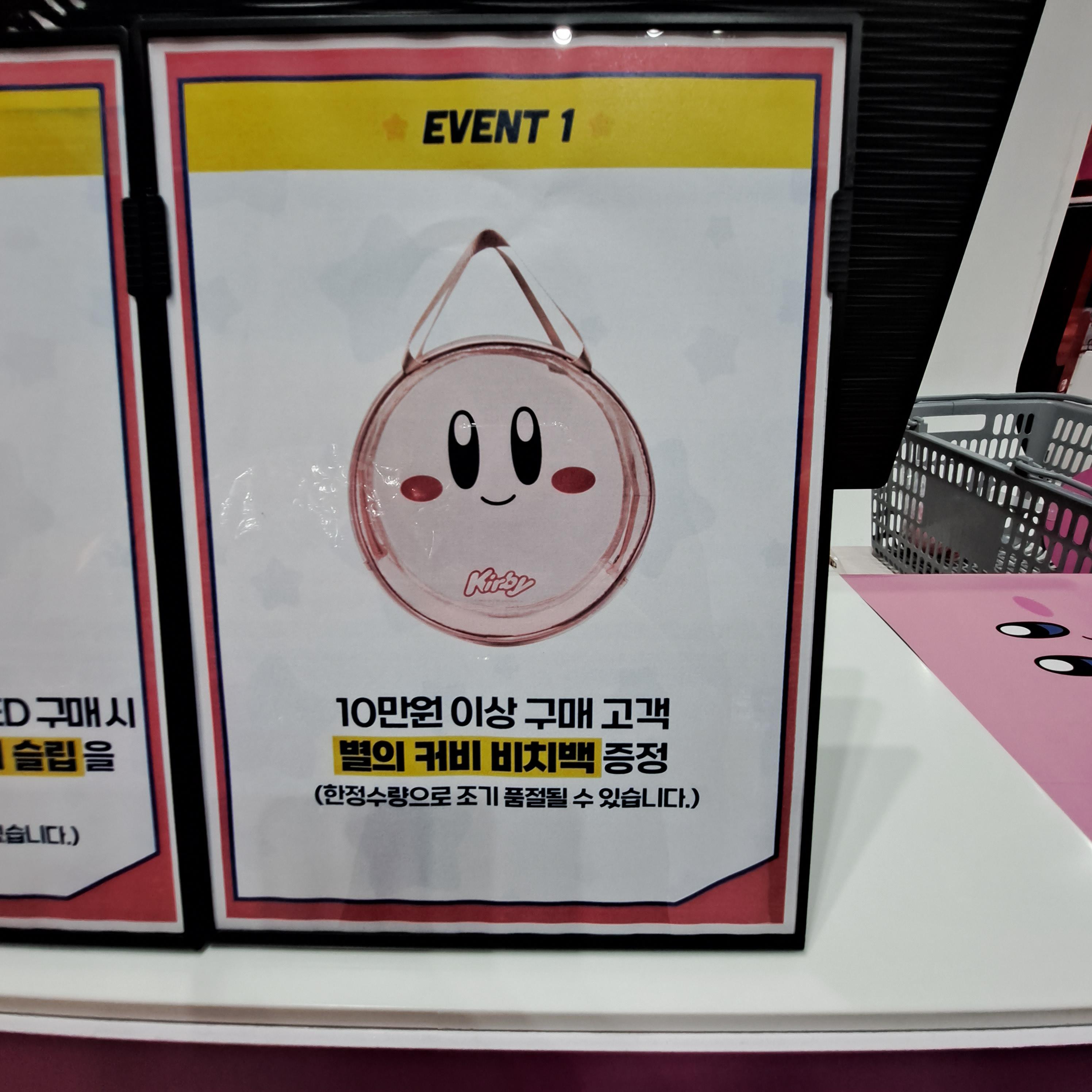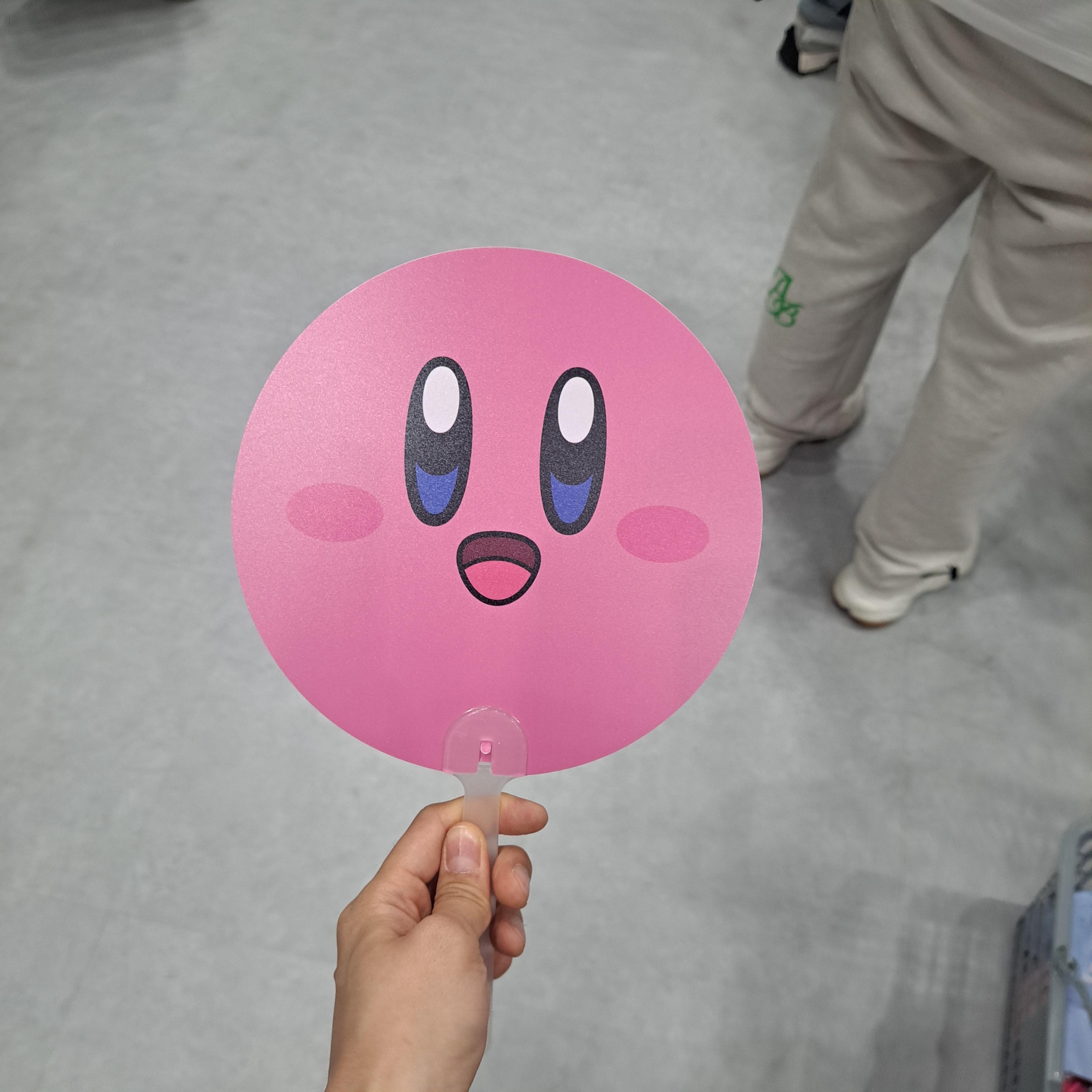 닌텐도 어카운트 인증하고 SNS에서 #별의커비30주년 해쉬태그로 글 올린거 관리자한데 인증하면 바로 그 자리에서 준다. 처음에 이걸 결제하는 카운트에서 같이 하니까 결제시간이 엄청 길어졌나보더라. 내가 갈 때 쯤에는 부채 증정 코너는 따로 빼서 진행되어서 빠르게 받았음. 부채는 아직 재고가 많아 보임. 군데 진짜루 호좁함 ㅎㅎㅎㅎㅎㅎㅎㅎㅎㅎㅎㅎㅎㅎㅎ