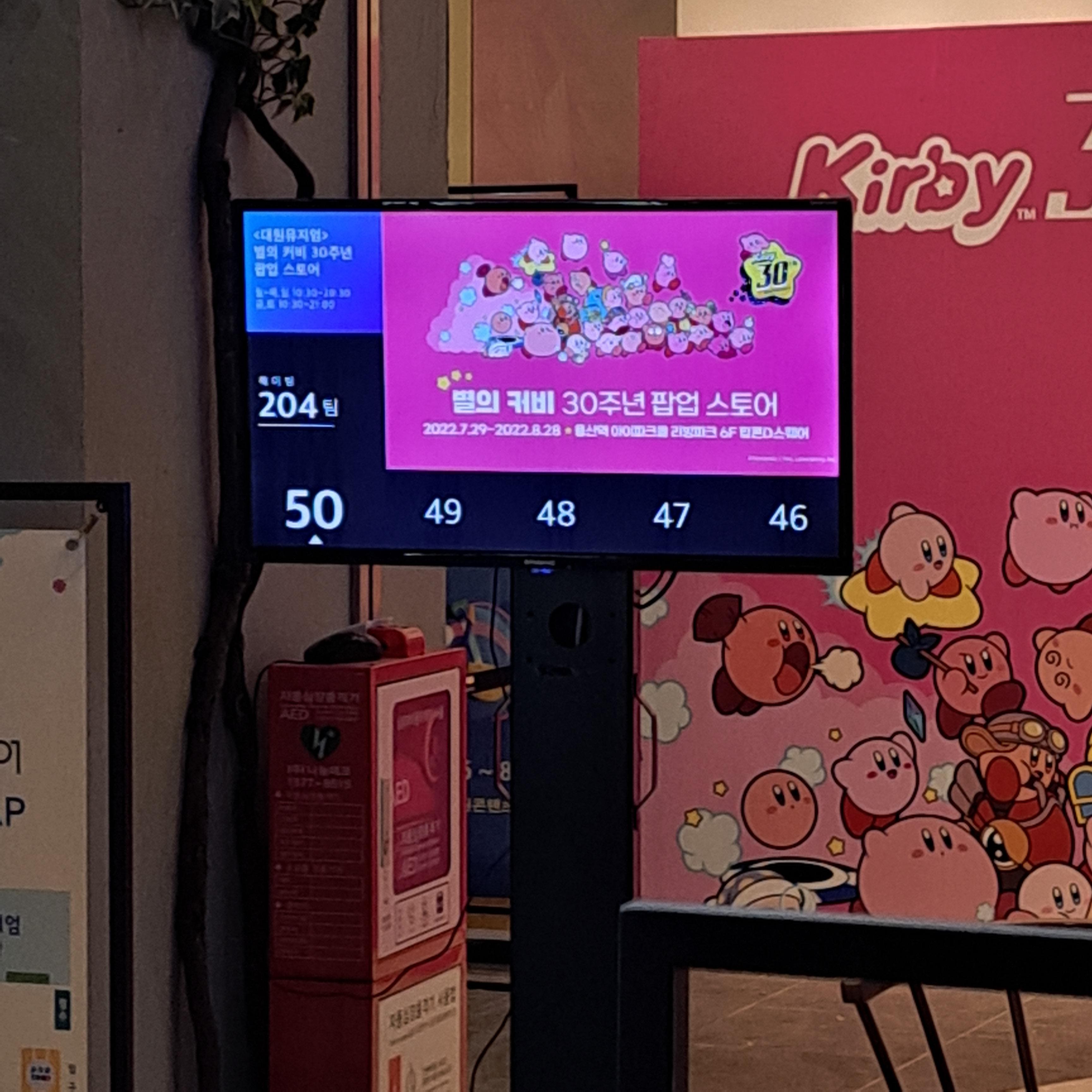 아이파크몰은 10시 30분부터 오픈이고 커비 팝업스토어는 11시부터 오픈이지만 내가 도착한 10시 30분에는 이미 대기가 50팀 정도가 있었음............