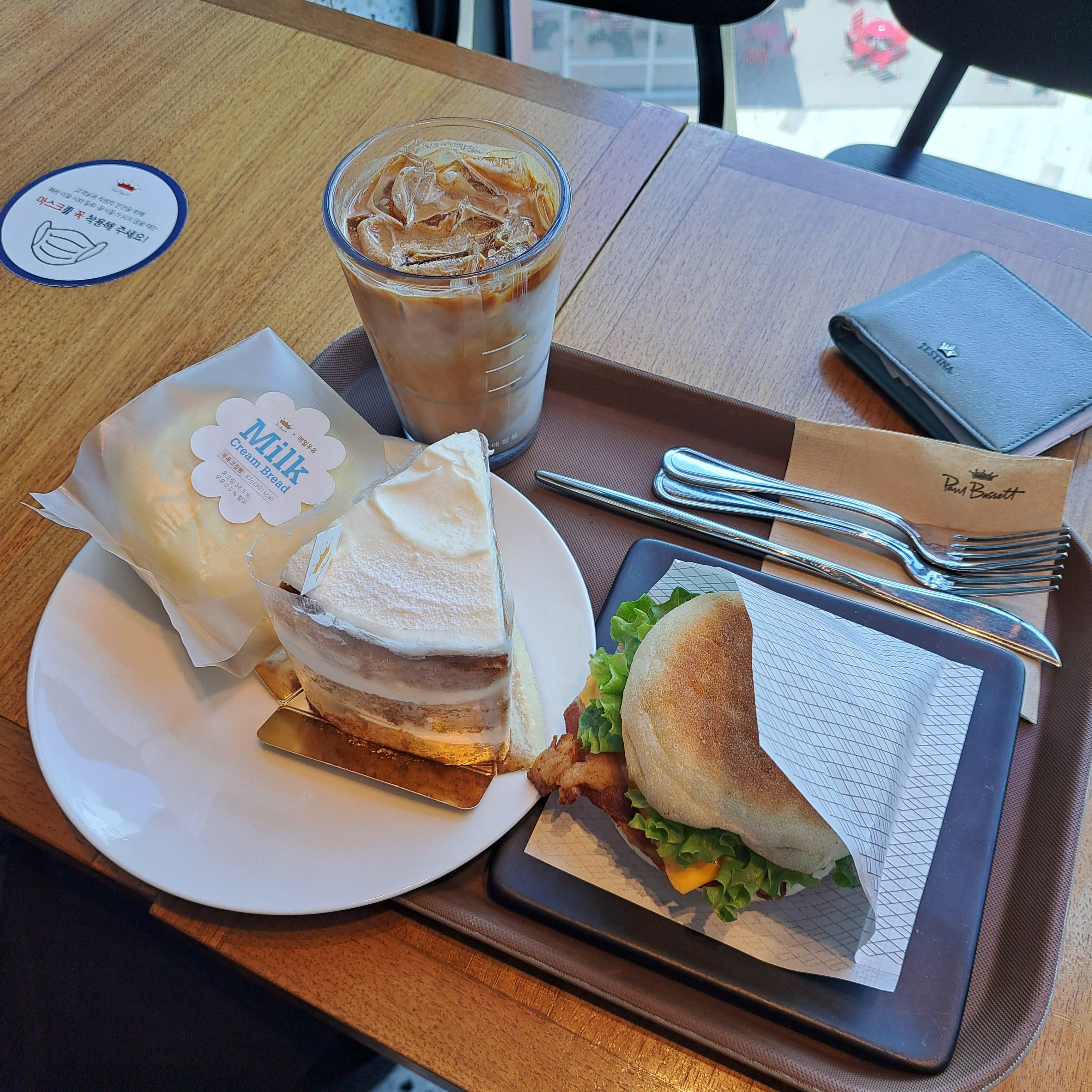 폴바셋에서 머핀, 당근케이크, 우유크림빵, 라떼를 먹었당.