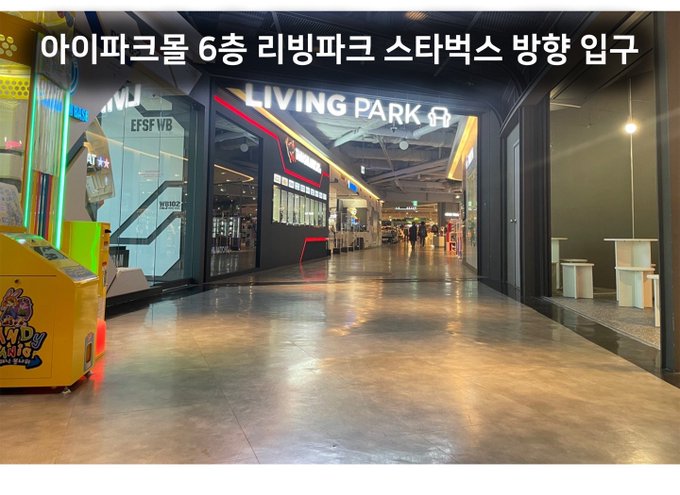 - 스타벅스가 나의 좌측이 되게 하여 벽을 따라 걸으면 정면에 리빙파크라고 써져있는 부분에 도착합니다.