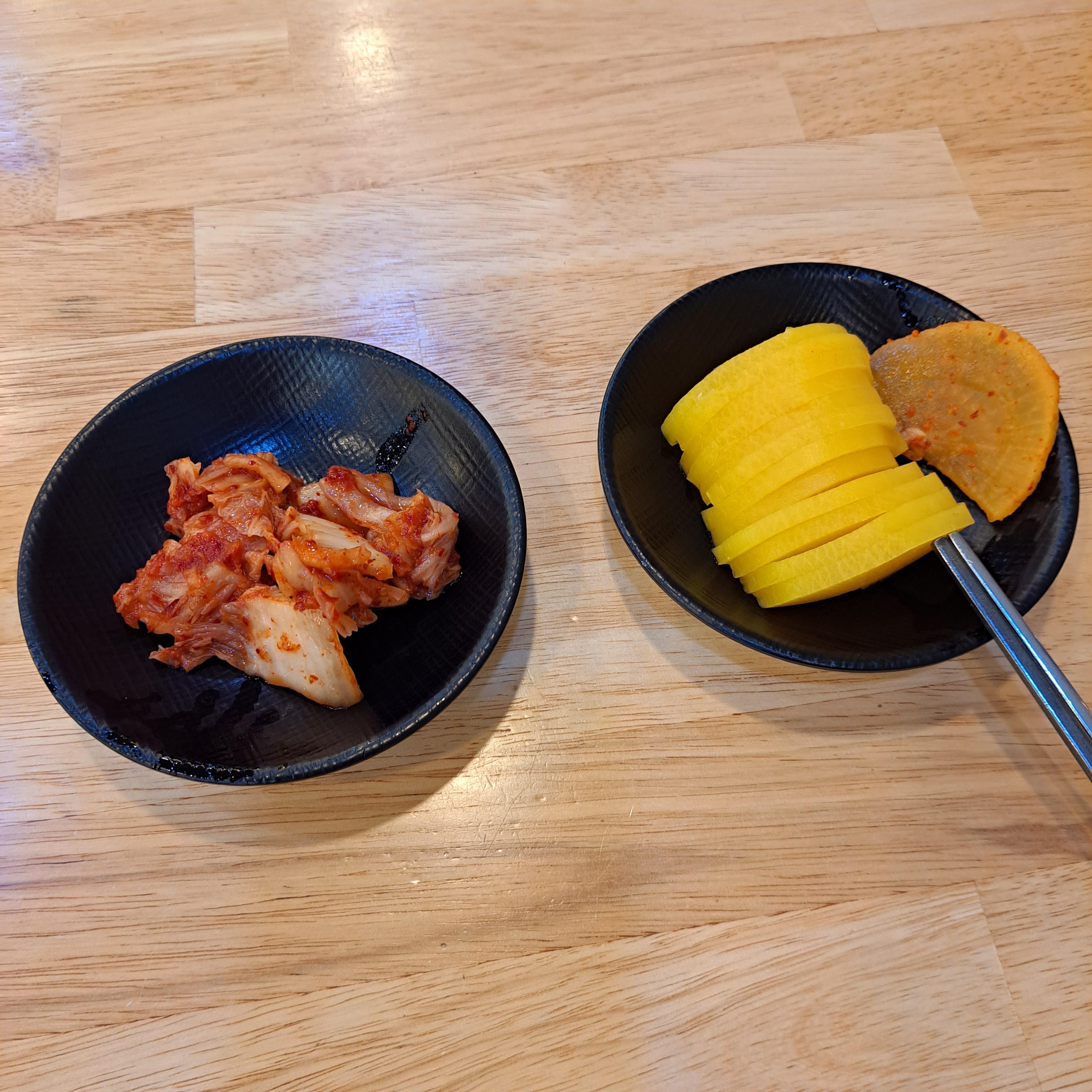 기본반찬도 셀프다. 처음부터 다 가져와야한다. 배추김치와 단무지, 그리고 양념이 된 단무지가 있었다. 양념 단무지는 제조한 것으로 보이고..말안해도 알겠지만... 맛만 보려고 2장만 가지고 옴 ㅎㅎㅎㅎ