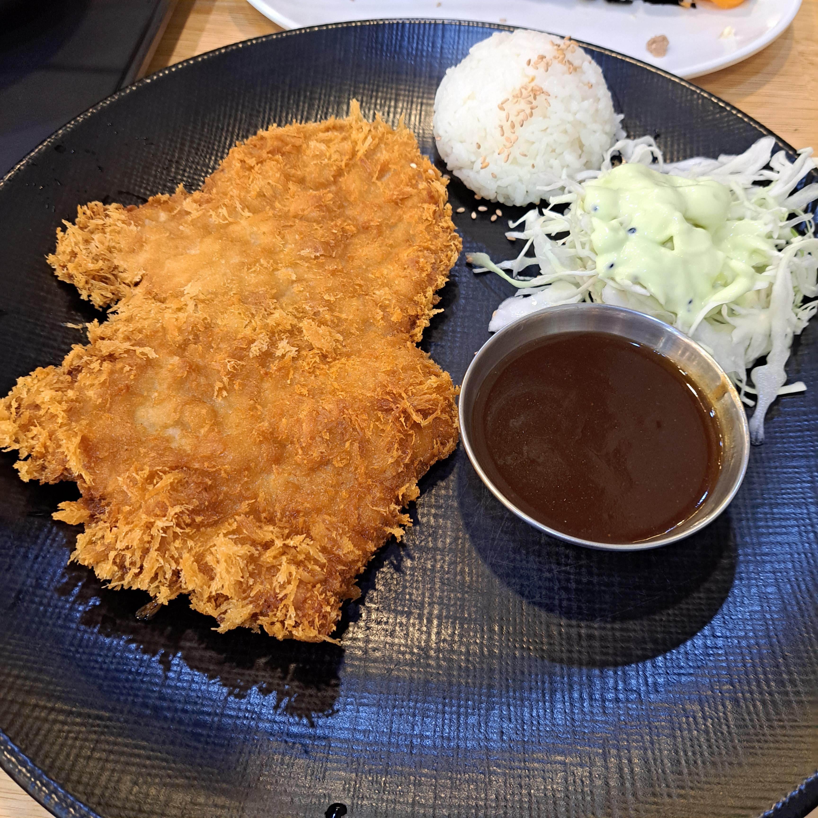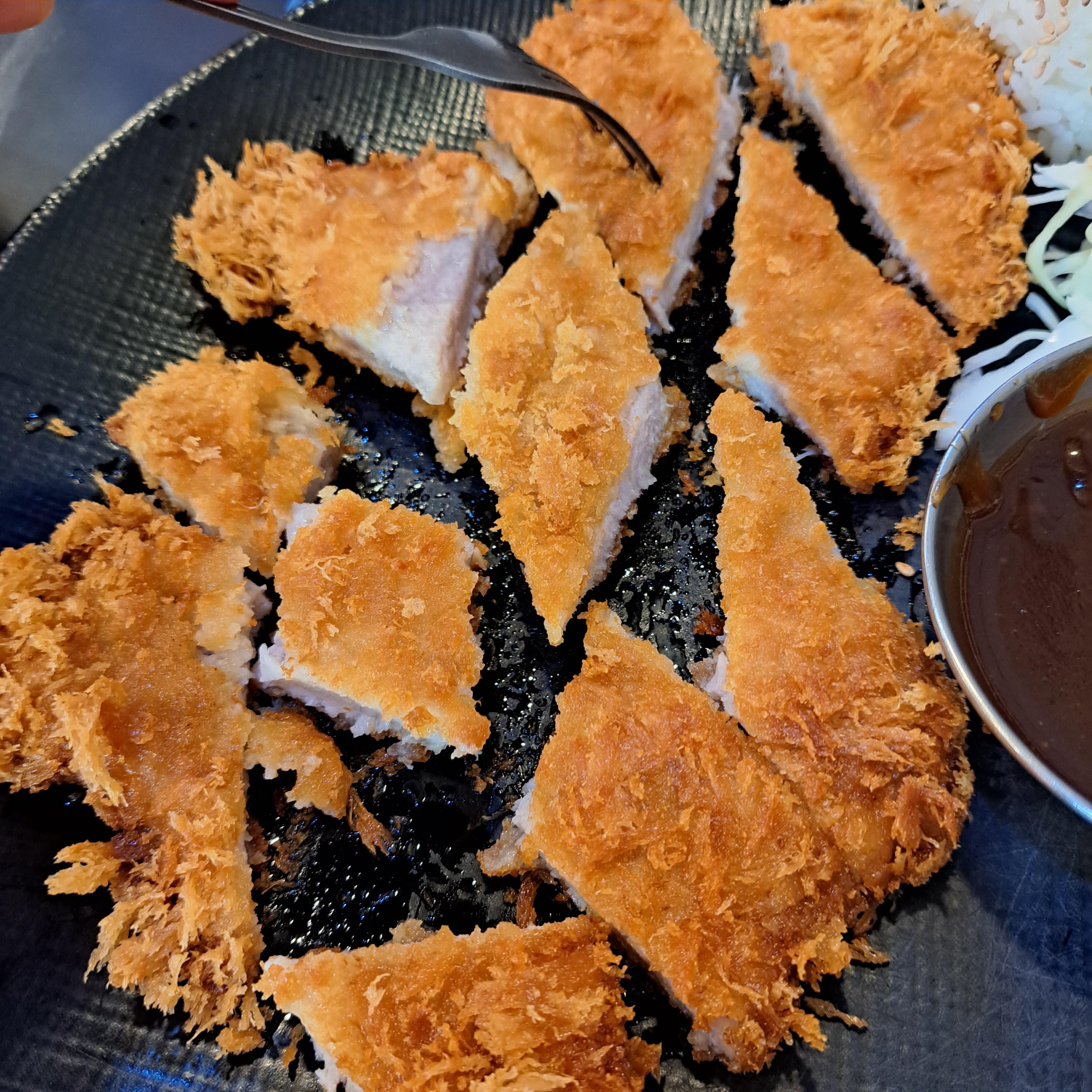 생각보다...맛있었다. 일본돈까스 생각하고 시키면 큰일 나고, 그냥 납작 돈까스가 먹고 싶을 때 먹으면 좋겠다. 은근 바삭하게 튀겨졌다. 입 천장 다 까짐. 고기가 아주 얇은게 아니라 괜찮았다.