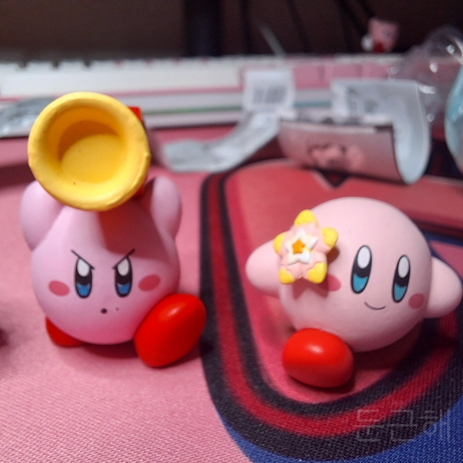 살짝 도색이 까진건지 덜 발린건지 모르겠고 울퉁불퉁한 것들을 옴. 홀인원 커비쨩 . 뽑아본 가챠중에 제일 상태가 안좋다.