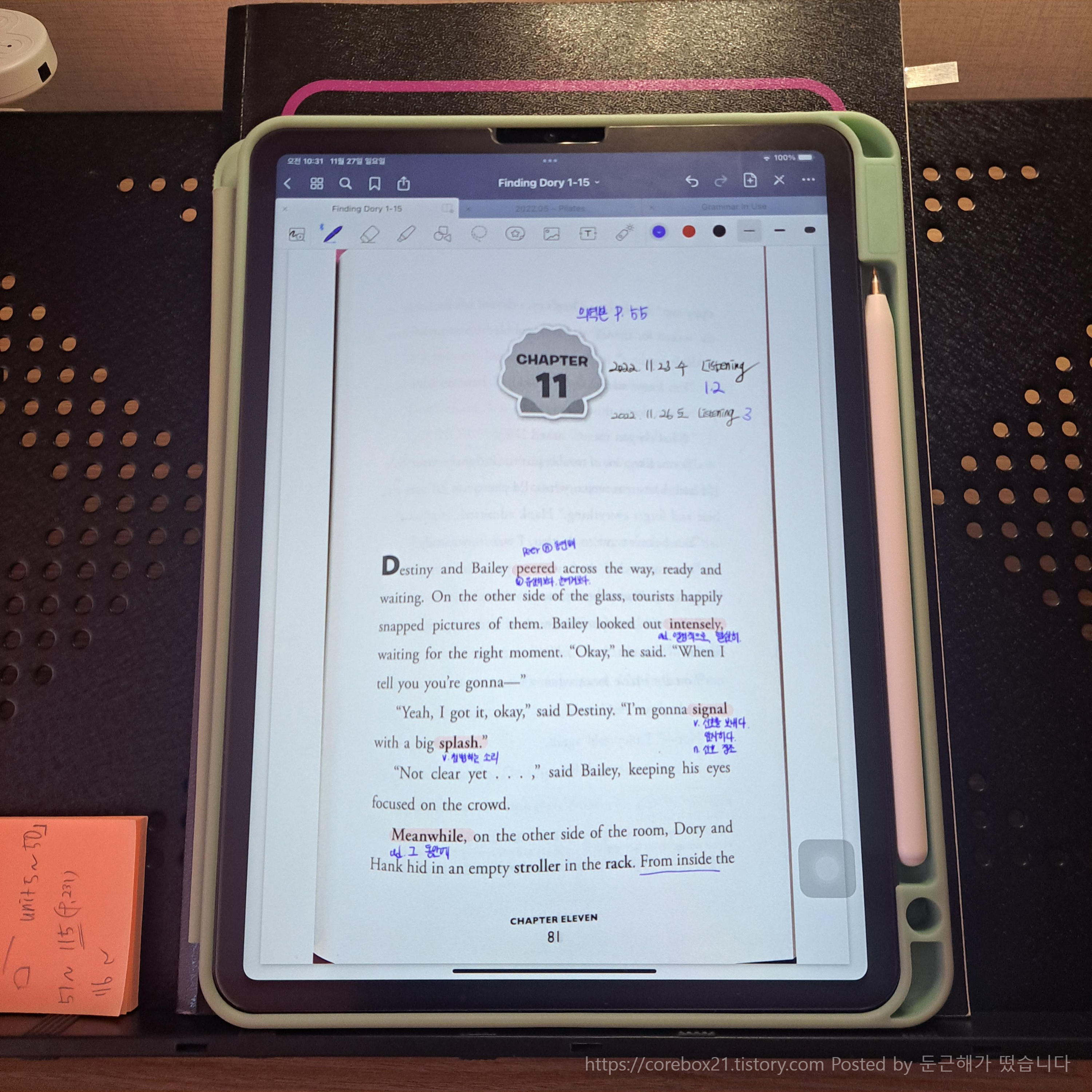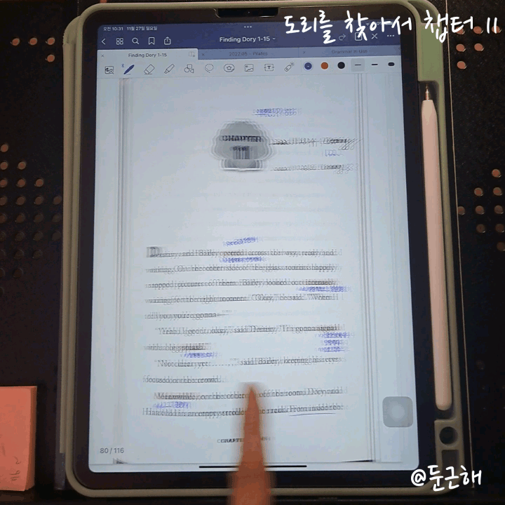 대략 5천원으로 도리를 읽은셈이다. 원서를 아이패드로 스캔해서 굿노트로 옮겨다가 읽고 있다. 스캔의 상태는 약간 일렁이는 부분도 많지만 내가 읽기에는 부족함이 없다. 그리고 저렇게 마음대로 필기도 할 수 있고 글자도 작게 적을 수 있고 책갈피도 할 수 있으니까 책 읽는대는 아이패드가 와따인 것 같다. 갤탭으로 이렇게까지 활용은 못했는데, 굿노트 기능이 좋은 것 같음.