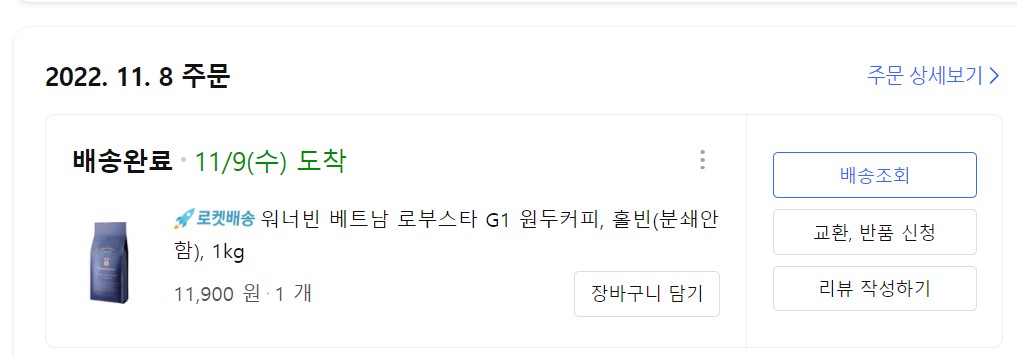 워너빈 베트남 로부스타 G1 원두커피는 생각보다 맛탱이가 없었다. 이 원두를 살 때는 나름 원두보관에 힘을 써봤다. 그래봤자 소분해서 냉동보관 후 해동시켜 커피머신에 넣는 정도다. 냉동실냄새가 스며들지않게 비닐로 2중포장을 해보고 밀폐유리병에도 넣어봤지만 별 차이를 모르겠다. 어째됐건 열심히 마셨다. 왜냐면 다음 원두를 사려면 나는 내가 산 카르마를 청산해야하기 때문! 누가 칼들고 협박해서 산게 아니기 때문에 내가 다 먹어야함. 이 원두를 2달간 먹어(없앴)본 결과 다시는 구매하고 싶지 않은 원두다. 어디가서 라이트 로스팅된 커피는 처다도 안볼 것 같다.