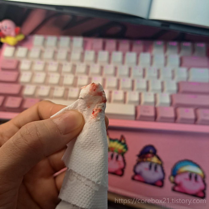 커피, 빵이랑 복용. 코피가 주룩 나오는건 아닌데 휴지로 코 안쪽 살짝만 닦아내면 그냥 피가 묻어나옴ㅋㅋ