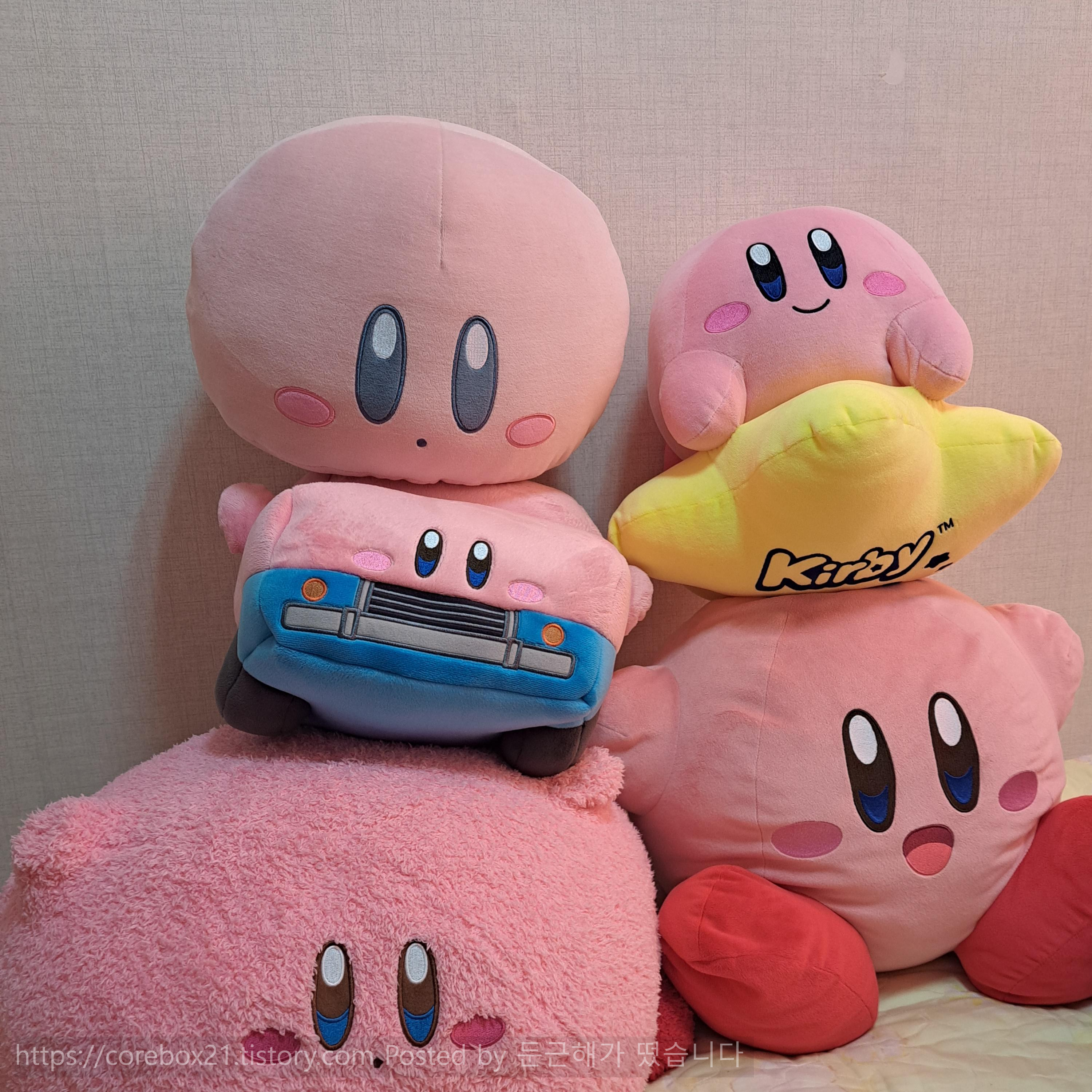 집에 있는 큰 커비들만 모아봄. 작은 커비들은 책상이나 올려져있거나 벽에 걸려 있다. 나의 수면을 함께하는 커비쟝