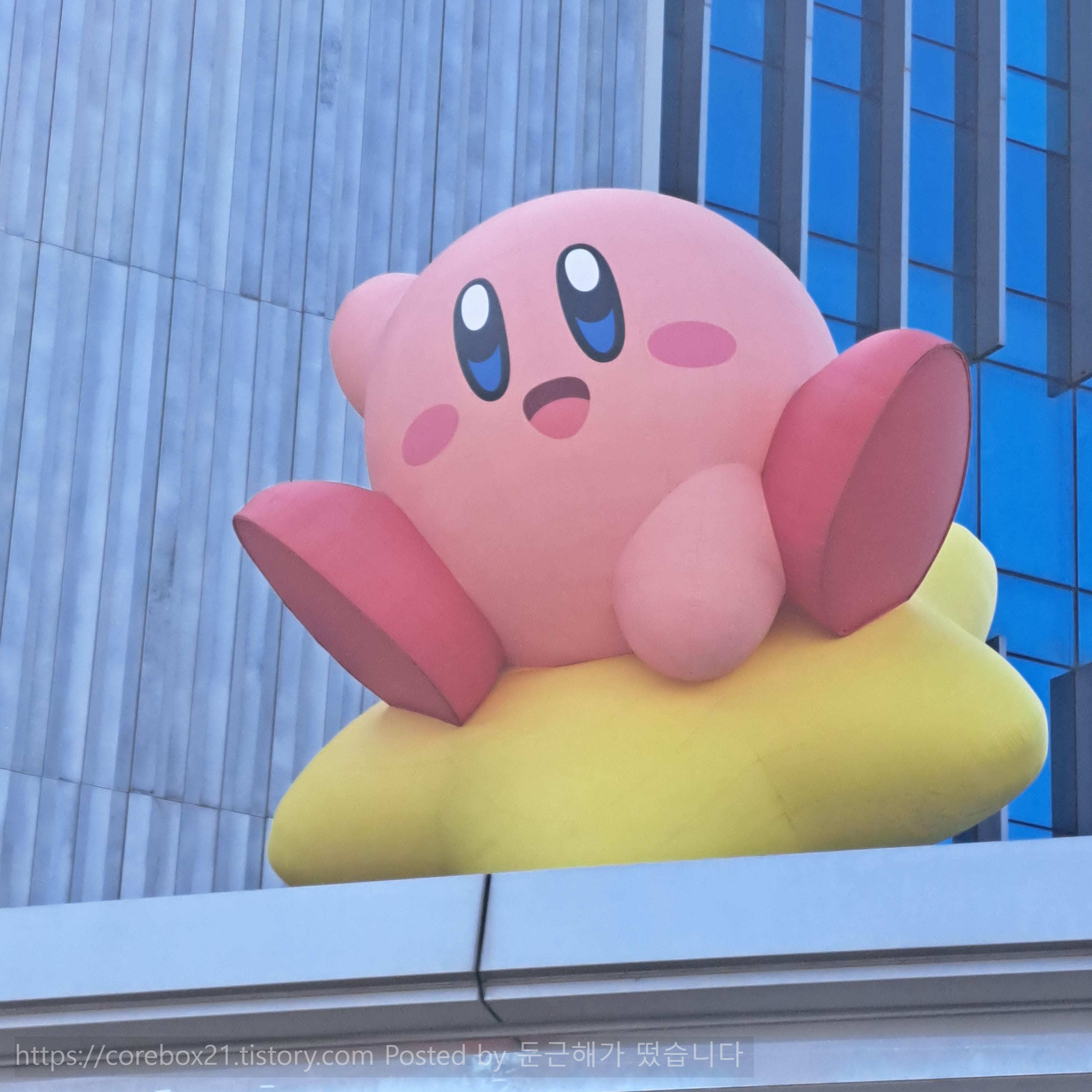 거대한 커비쨩이 나를 기다리고 있었음. 앞에서 사진 찍는 사람들이 너ㅓㅓㅓㅓㅓㅓㅓㅓㅓㅓㅓㅓ무 많아서 난 입구에서 사진도 못 찍었구마잉