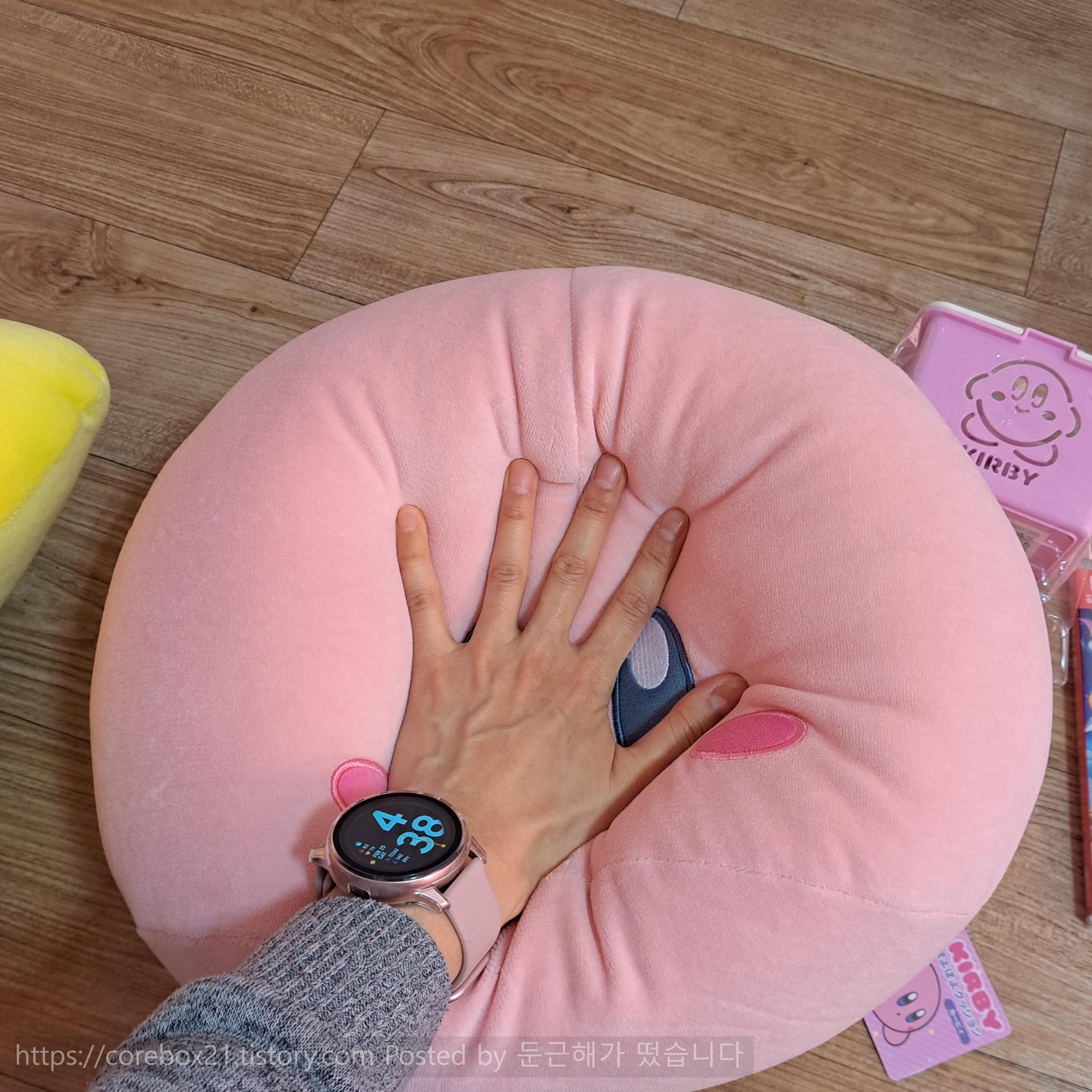마시멜로쿠션 . 별명은 커비 모찌 쿠션, 정식일본명칭은 포요포요 쿠션임ㅋㅋ 영수증에는 삼영_마시멜로 쿠션. 이거 엄청 물캉물캉하다..