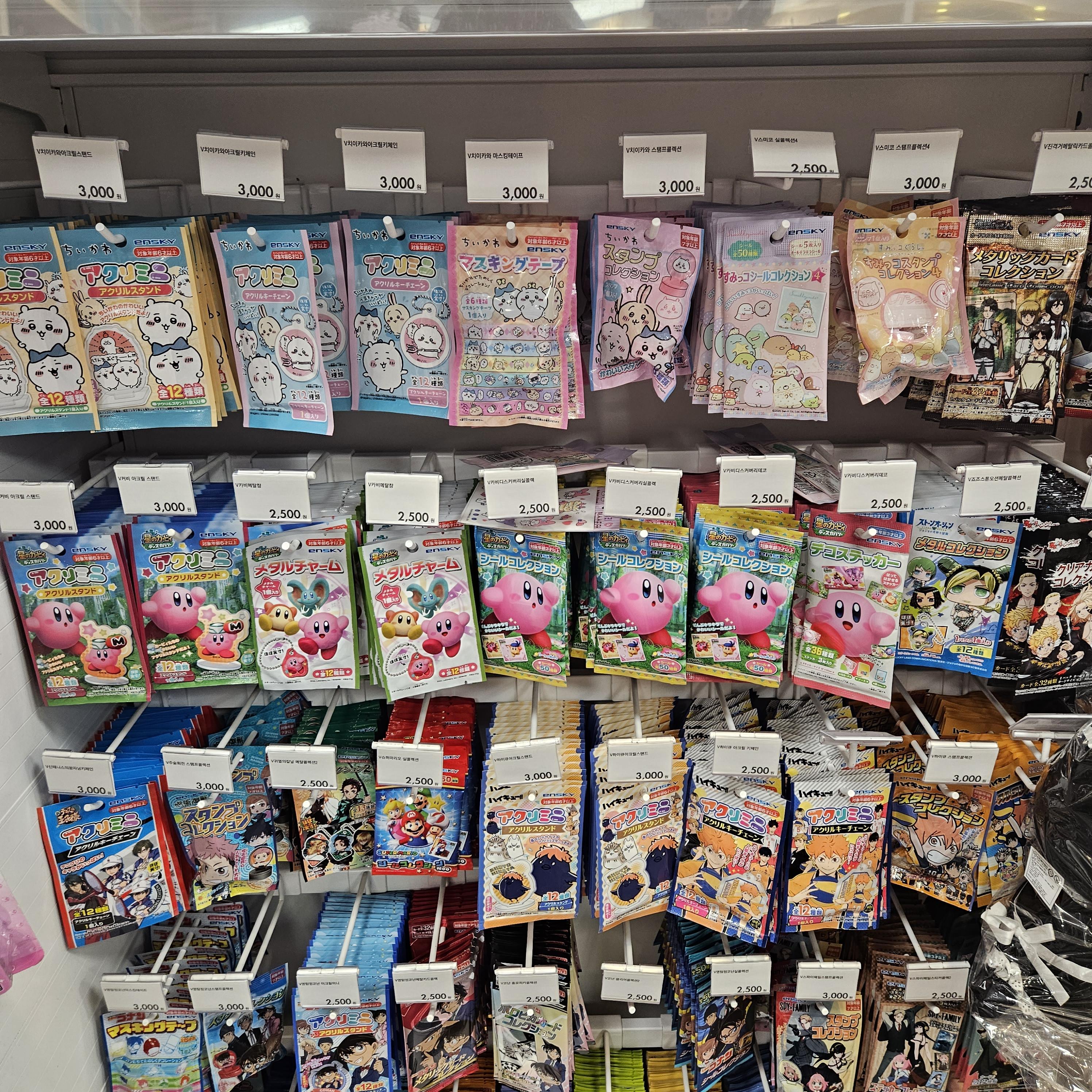 부천에 커비 피규어, 가챠, 리멘트, 굿즈, 인형, 스티커, 오타마톤 등 파는 곳은 아트박스가 제일 크고 가격이 균일하게 책정되어있음. 개수도 많다. 재고가 많음.