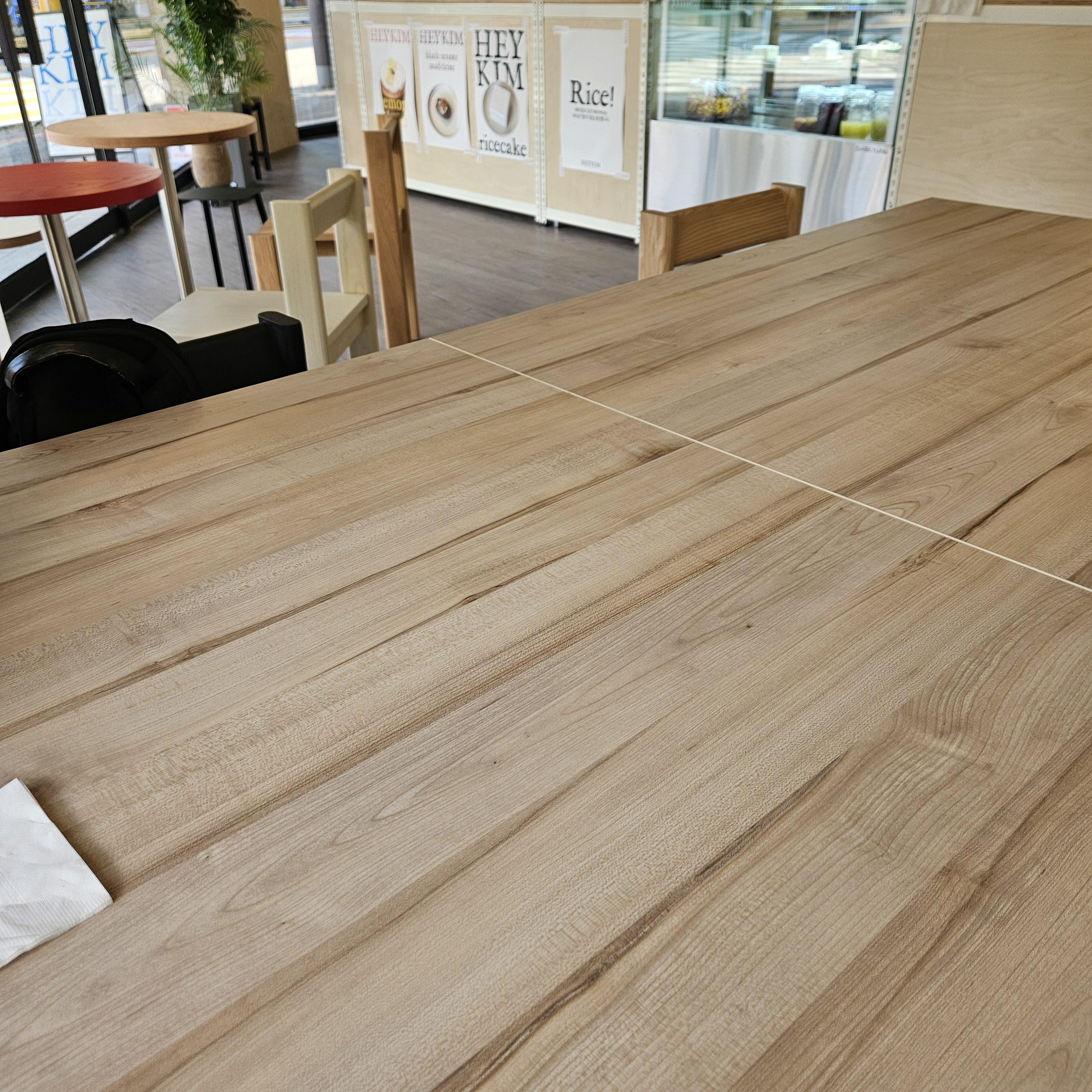 내가 간 시간에는 손님이 별로 없어서 다인석에 앉아봄. 의자와 테이블의 질감은 부드럽지만 딱딱하고 무거운 원목. 방석이 없으므로 허리가 안좋은 사람들은 오래 앉아 있지 못할 수 있으나 나는 딱딱한 의자가 더 좋다. 바른 자세로 앉아있을 수 있어서 선호하는 편임. 높이 나쁘지 않아~