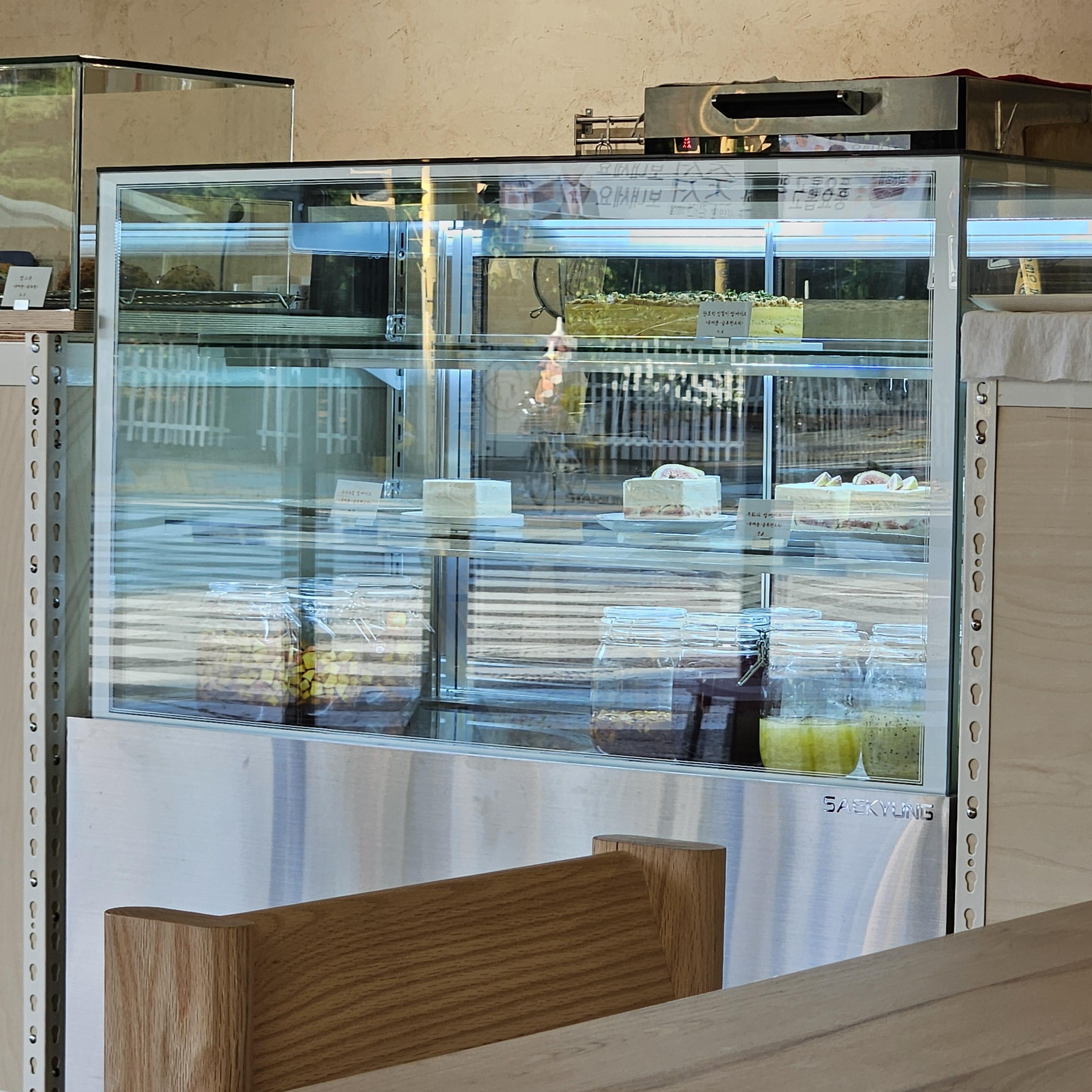 가게 내의 케이크와 수제청이 있는 쇼케이스. 개인적으로 에이드도 먹어보고 싶었음...