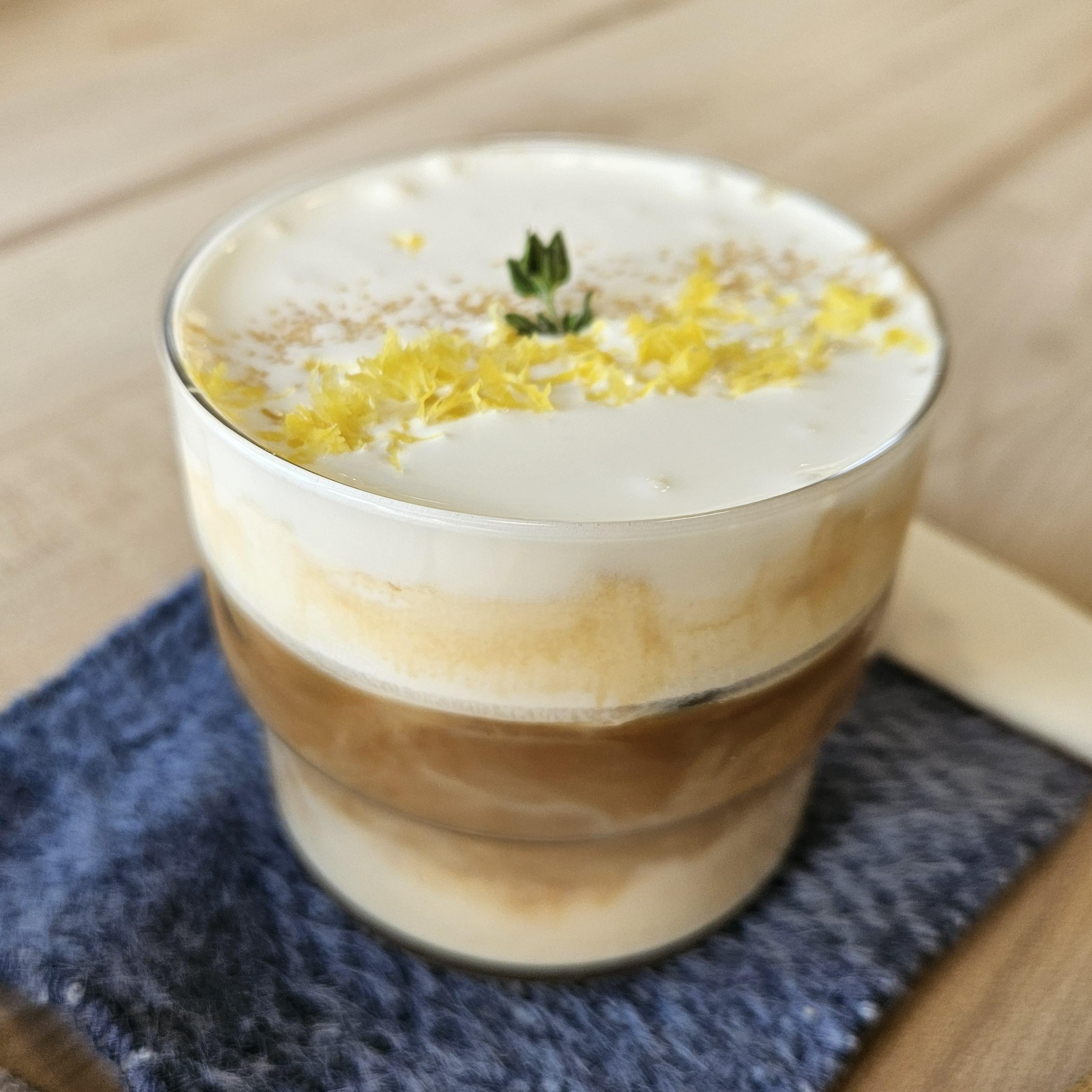 신박한 이름의 아인슈페너.. 이건 아인슈페너다. 아마도. 맞다. 보닌 이거 마셔보고 깜짝 놀람... 레몬펄프향이 너무나도 상큼했고, 뿌려진 갈색설탕의 맛, 즉 신맛+단맛+크림의 느끼 꼬소한 맛+ 커피의 쓴맛이 다 섞여서 풍미가 장난 아니라 한 입 마셔보고 개깜놀함.