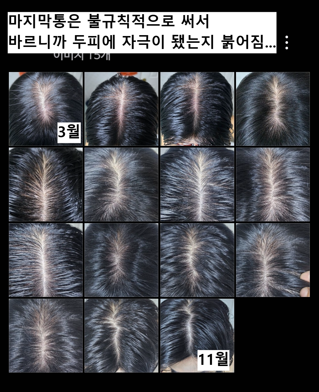 그래서 좀 더 선명하고 정확한 리뷰를 쓸 줄 알았음. 그런데 카셉 시험도 있고 머 등등 개바쁘고 며칠 귀찮아서 안 쓰고 있다가 한1주일 넘게 안쓰더니... 두피가 슬슬 간지럽기 시작했고 머릴 감아도 떡치는 현상이 예전처럼 변하는거보고 ㄷㄷㄷㄷ와씨 다시 발라야겠다라는 생각이 확 들었음. 우선 보닌쟝 쓰다가 안쓰니 체감상 가장 컸던 변동사항은 ...!! 바르다 안바르면 머리카락이 다시 빠진다는 것....원래대로 ㄱ돌아간다구...