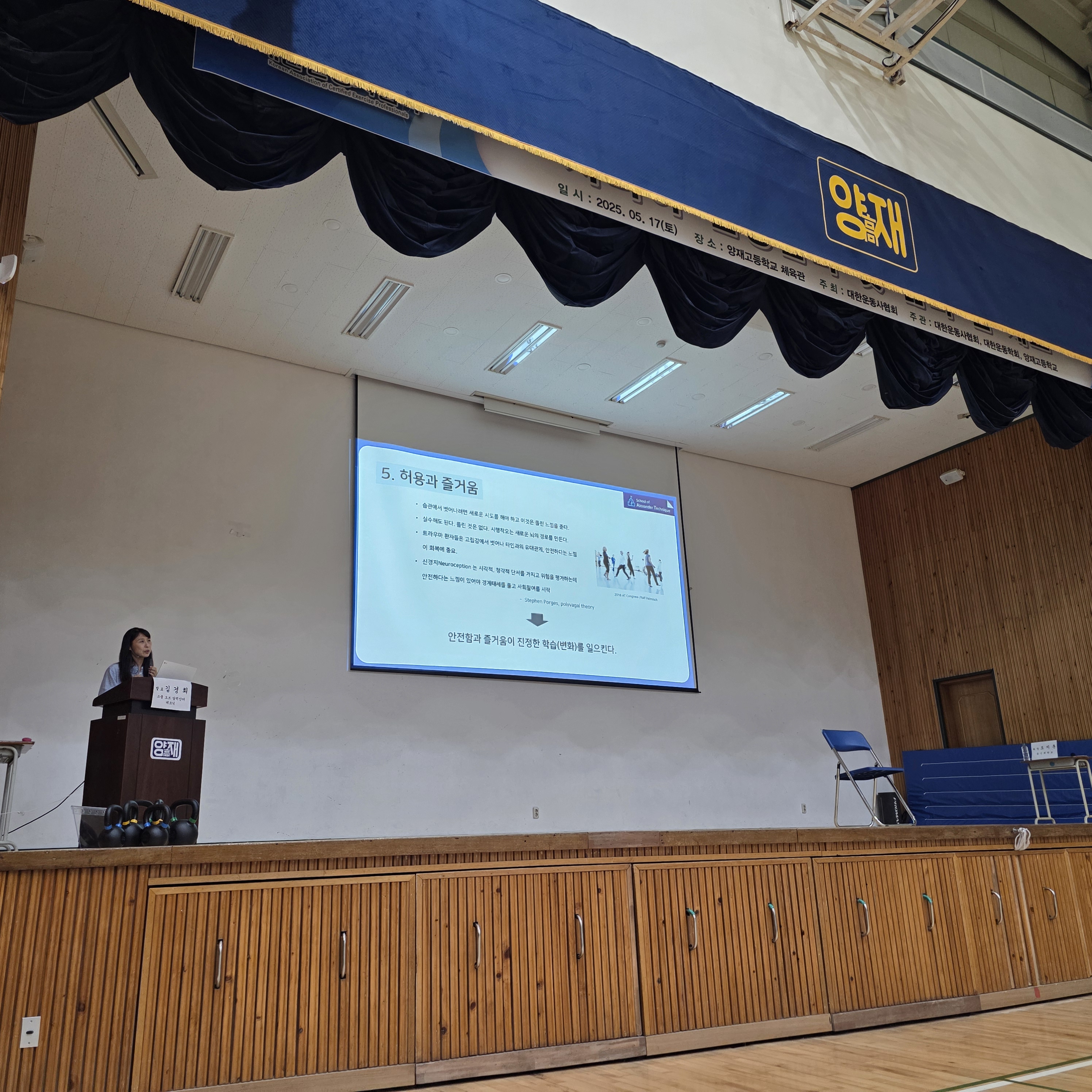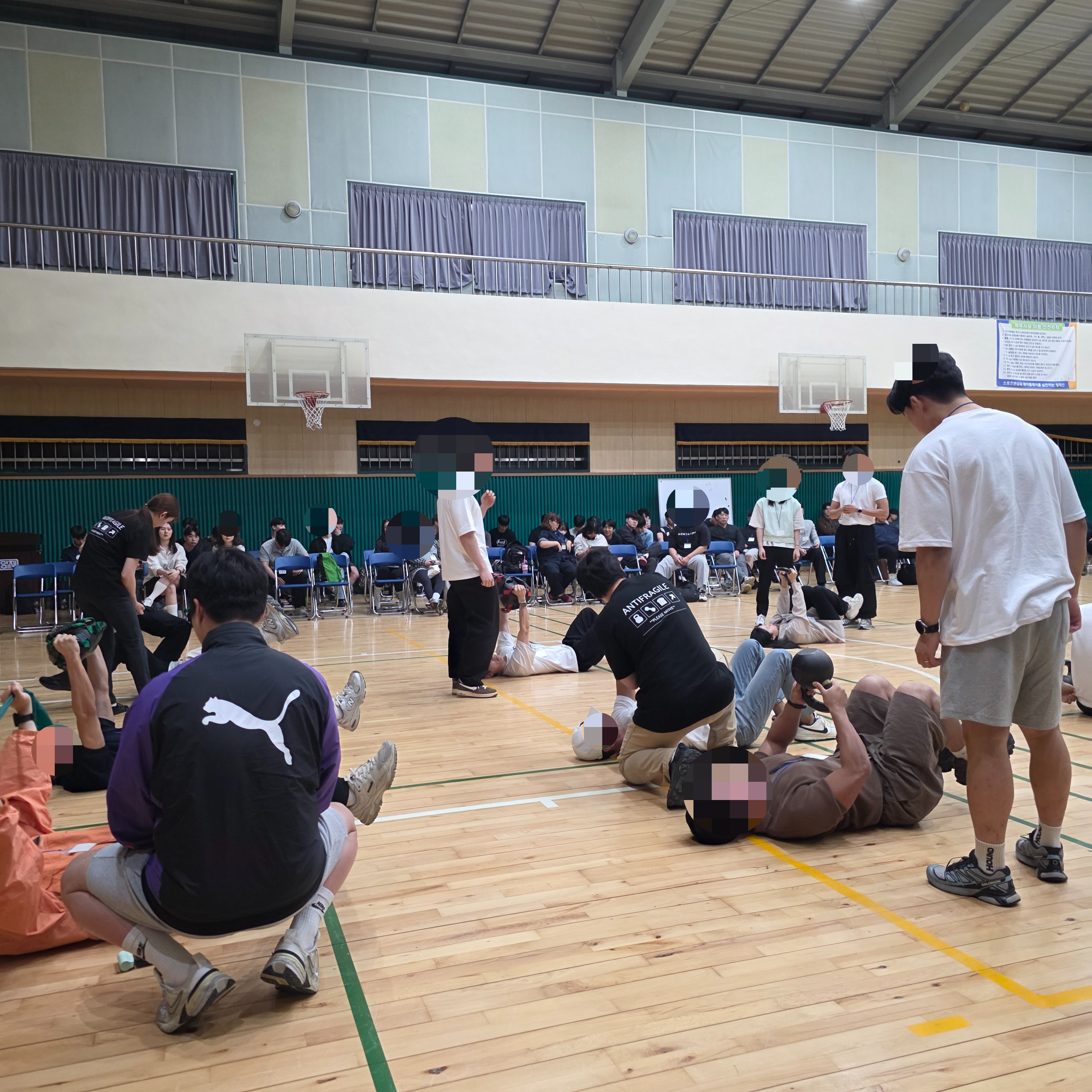 1시부터 5시까지 총 4시간 동안 진행된 워크숍. 이론교육이 포함되어있고 실습이 있었다. 운동사 직무연수 안내 문자에는 옷을 단정이 입고오쇼라는 안내가 있어서 보닌 넥타이하고 갔는데 실습이 있어서 셔츠에 땀좀 묻혓음 젠장,, 양말.. 깨끗히 세탁하도록 한다.