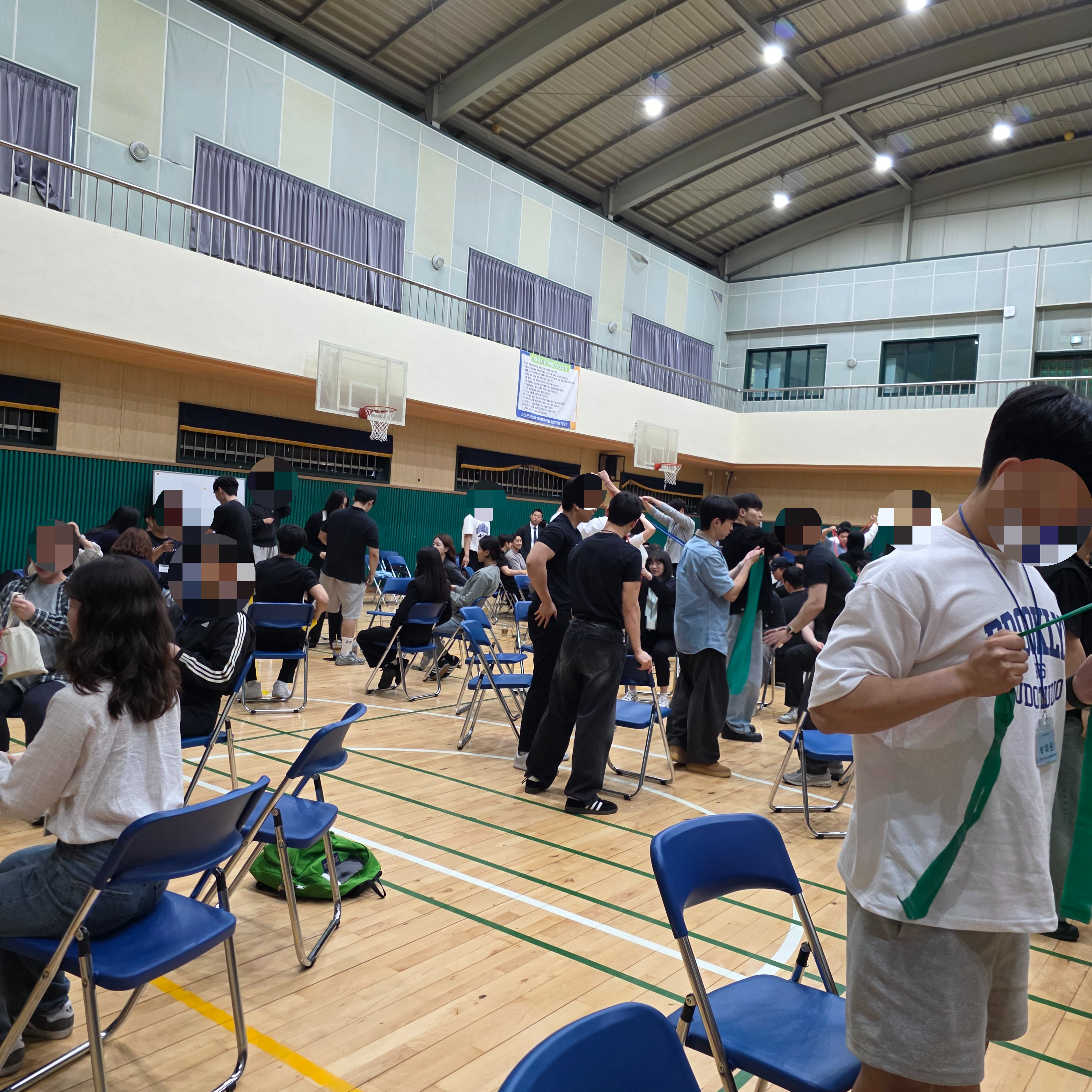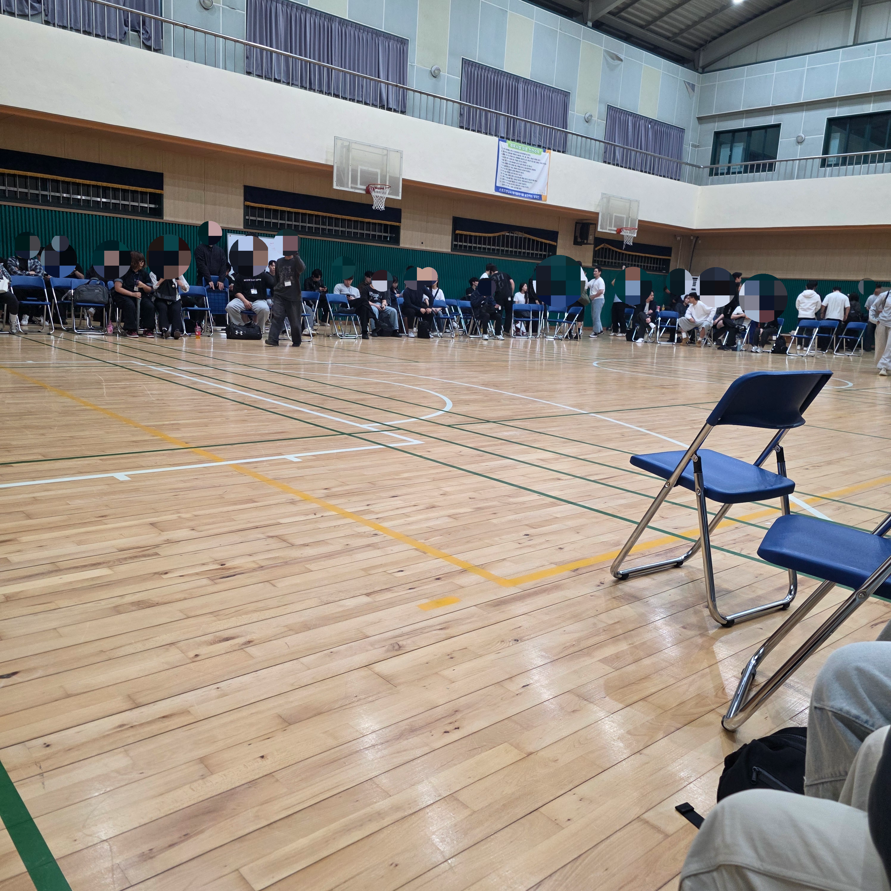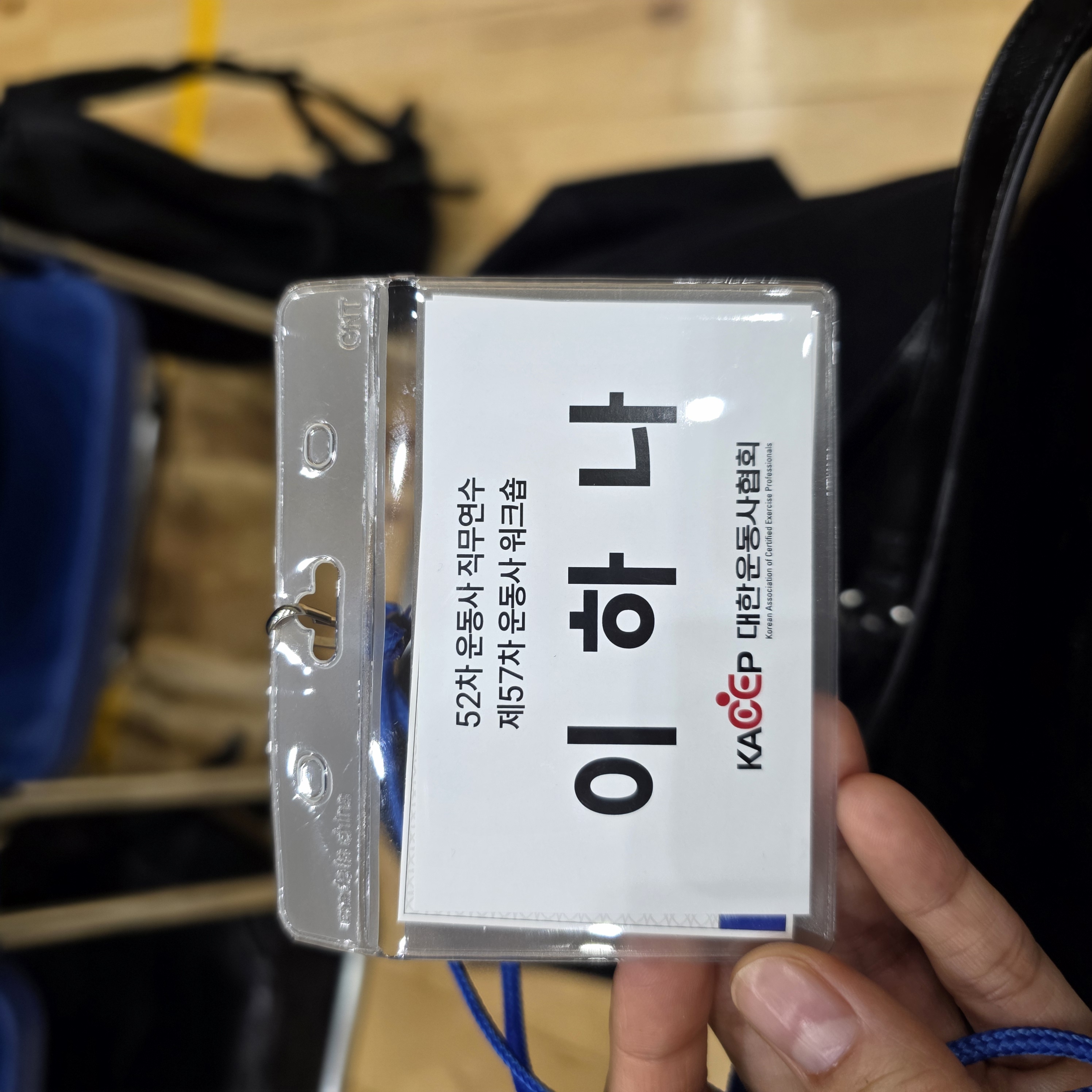 체육관 입장 전 참가자 이름을 확인하고 이름표 받음. 신분증 제시해서 본인 확인은 안하더라.