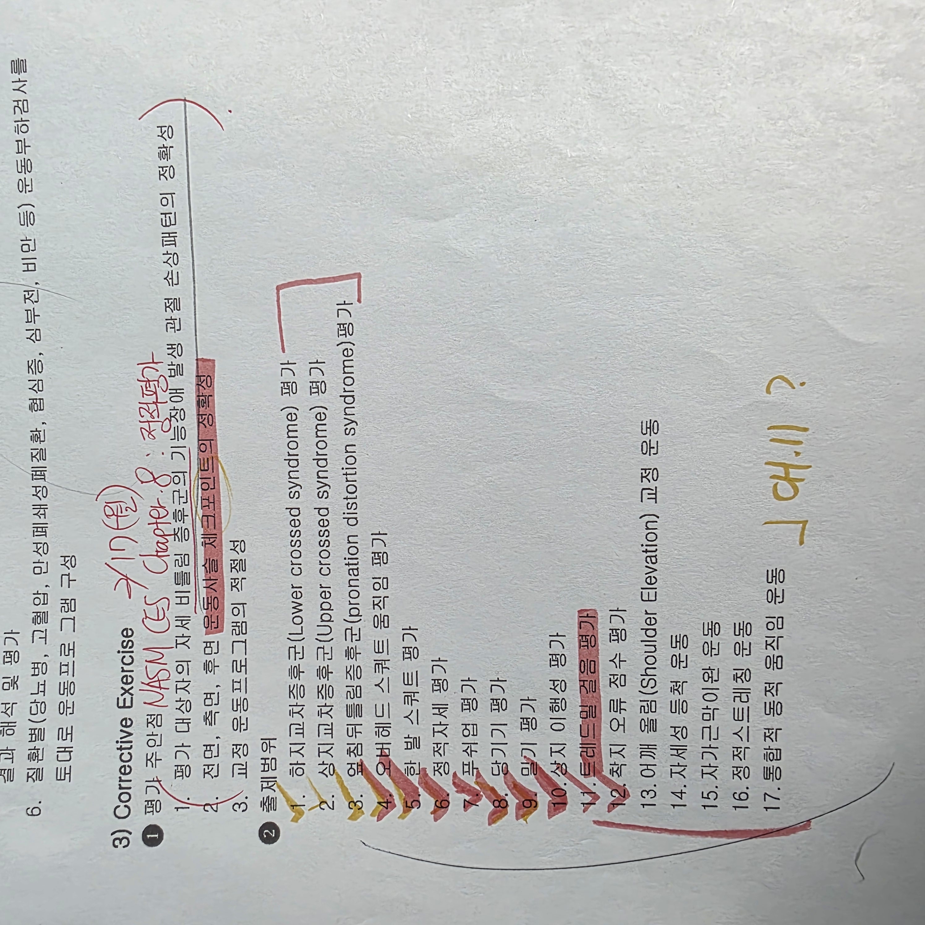 또한 NASM CES 내용에서 평가파트 보시면 됩니다. 평가시 어떤 면에서 봐야하는지, 무엇을 검사하는 검사방법인지, 이름과 그림 매칭해서 외우시면 됨