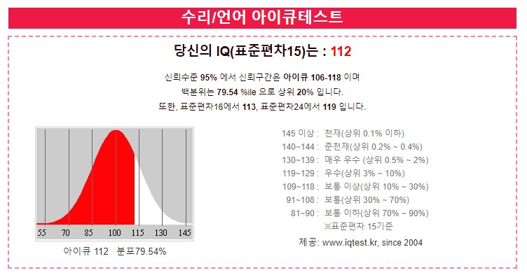 물론 나는 그저 평범했다. 만약 어릴 때 이 테스트를 했더라면 이런 결과를 받아드리지 못했을것...!