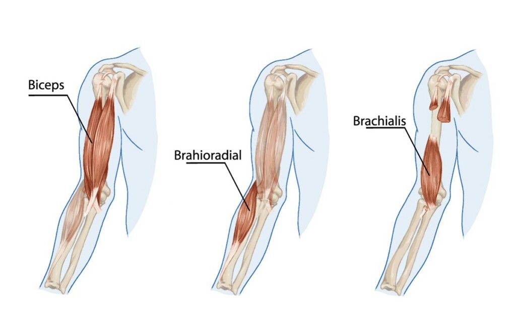 *팔꿈치를 접을 때 가장 강하게 작용하는 근육이다.(가장 강한 주관절 굴곡근 elbow flexor)