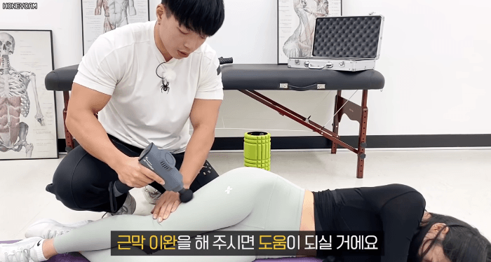 마사지건이나 폼롤러 마사지를 해주면 혈액순환을 많이 도와주기 때문에