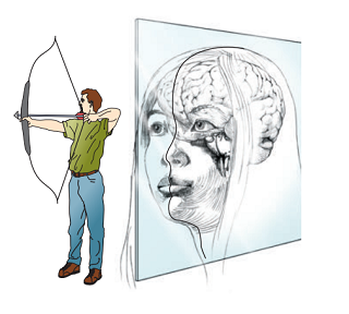 두개골이 화살에 맞아 반으로 쪼개진 모습을 상상하면 쉬울 것 같습니당!