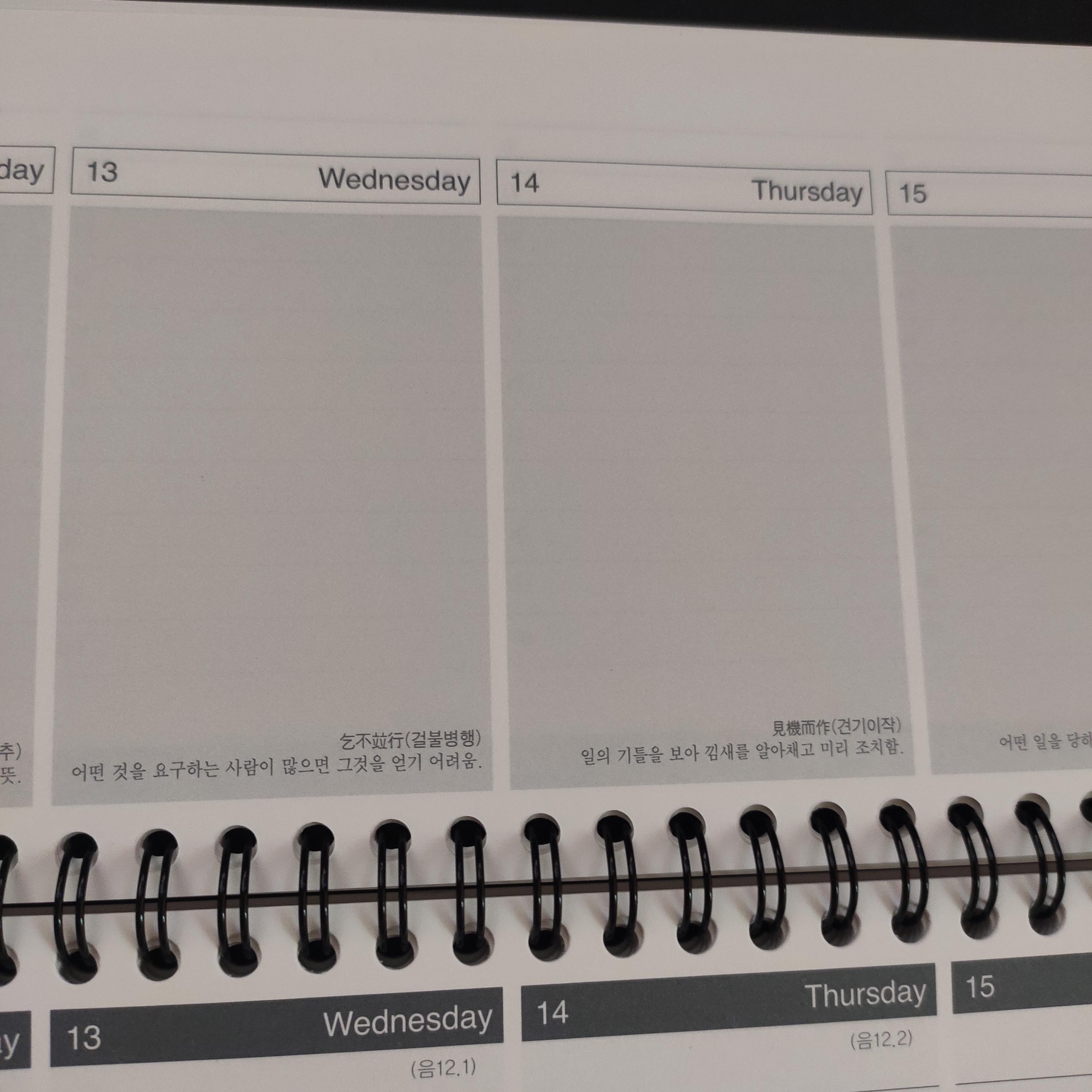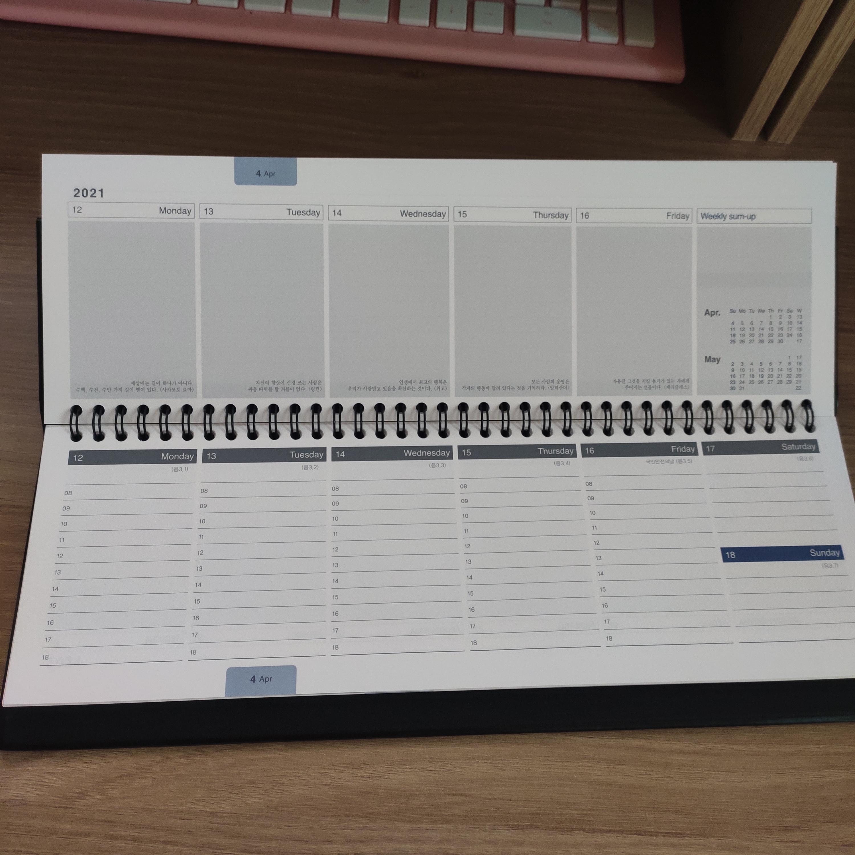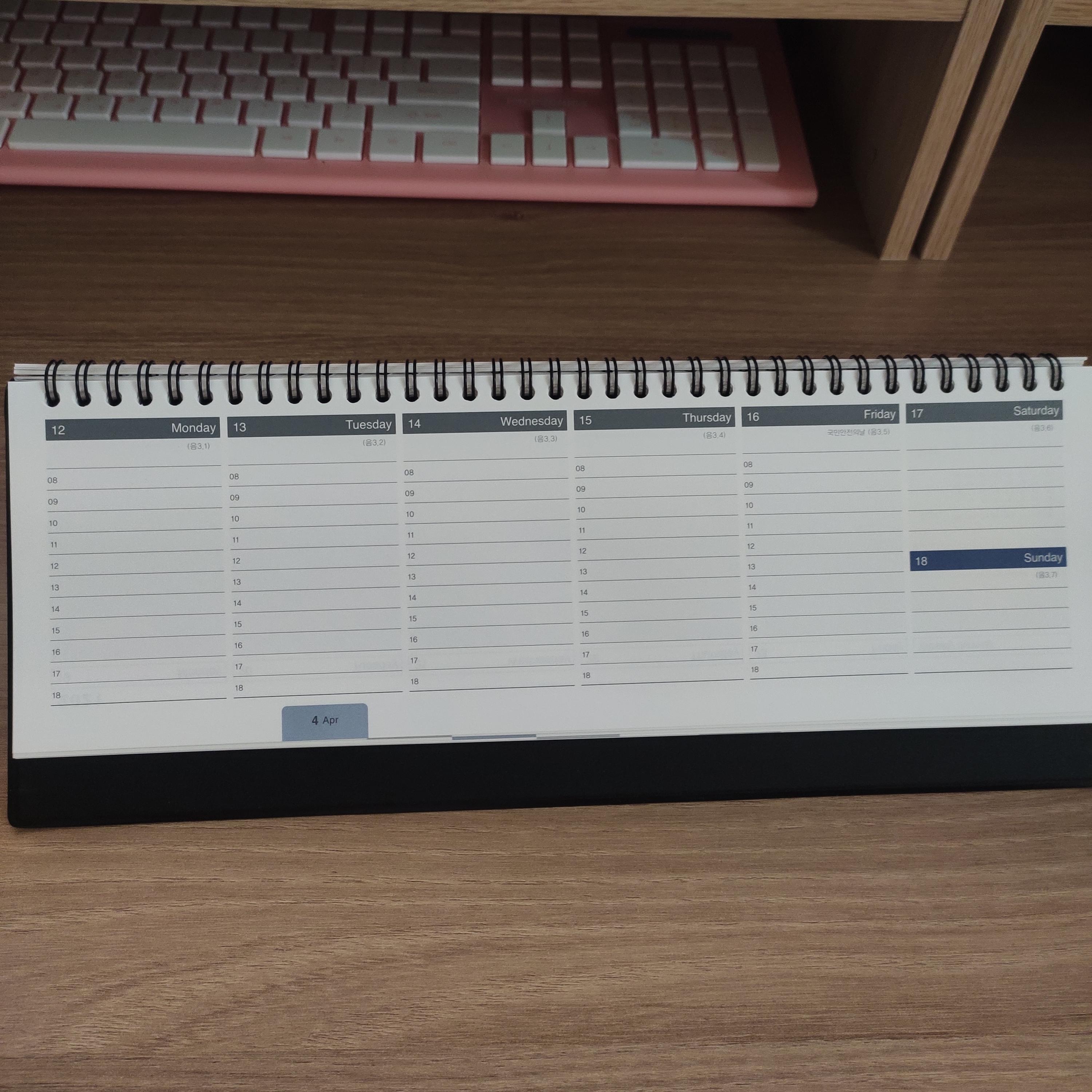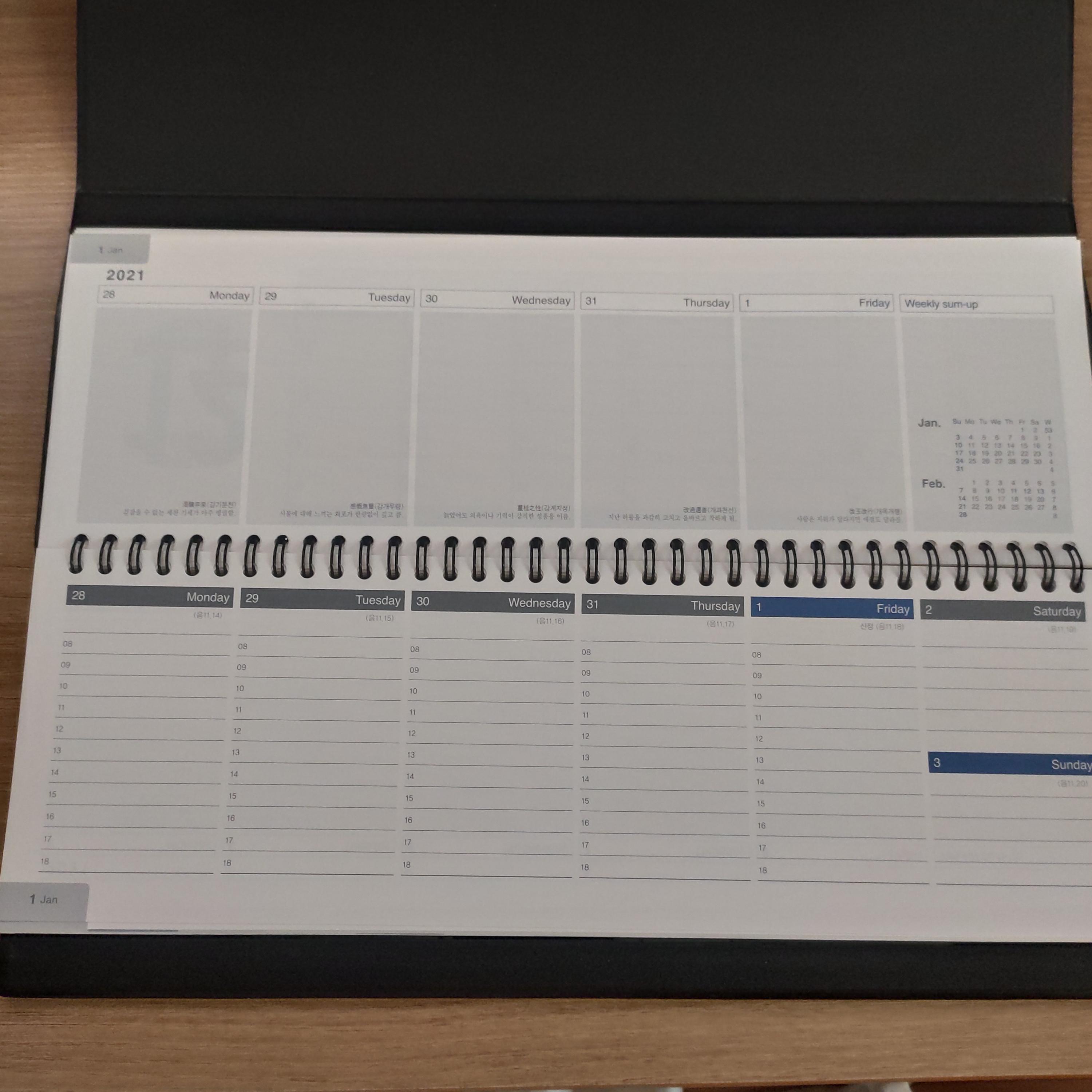 주간 스케쥴 2면을 동시에 잘 쓸 수 있다.