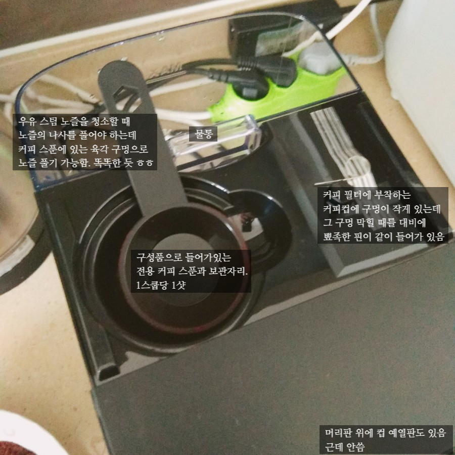 - 우유 스팀을 쓰려는 자는 인내심이 있어야 한다. 그 우유..스테인레스 통... 그거 밀크..머시기.. 그거 필요하다..