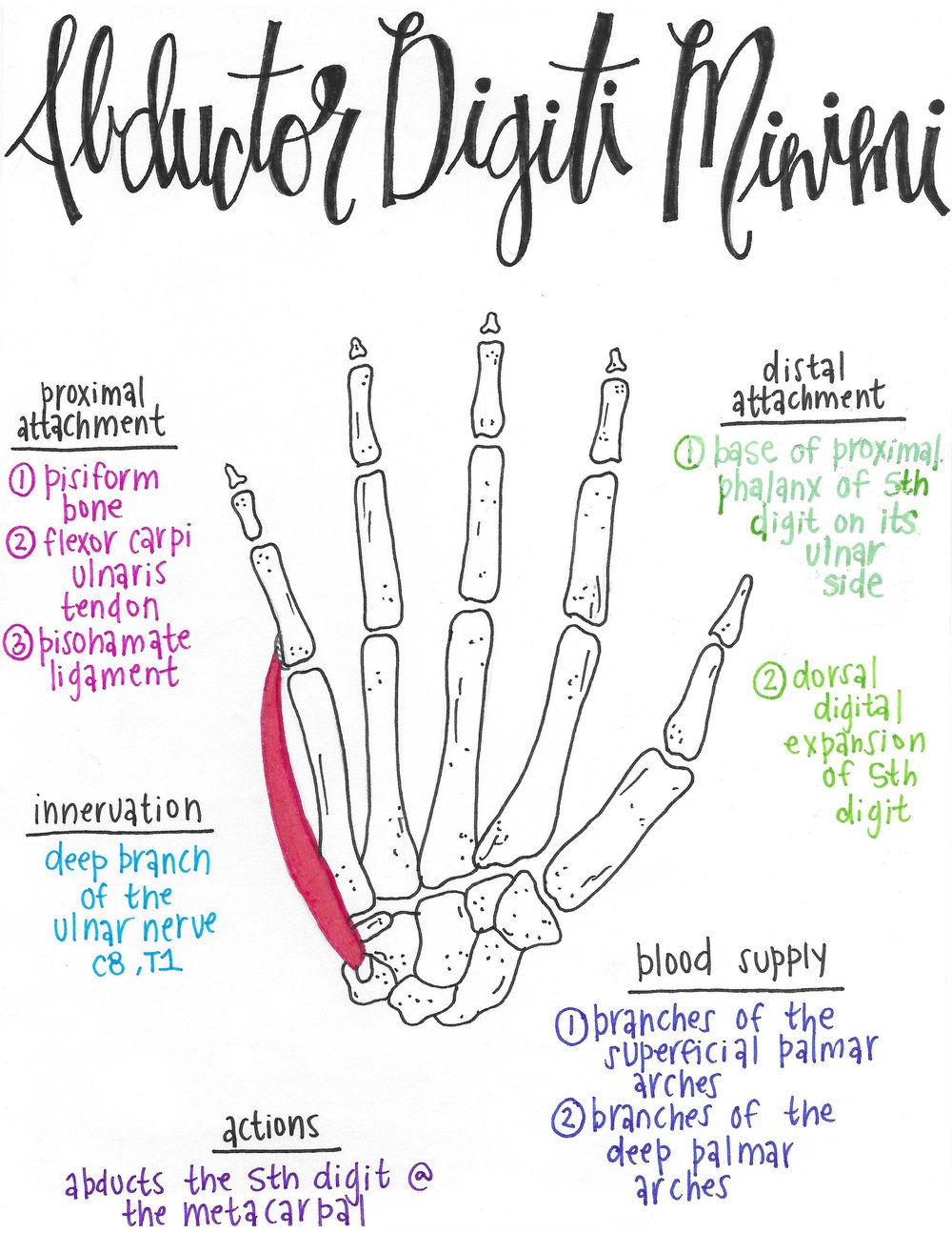 2)insertion : Ulnar side of base of proximal phalanx of digit 5, Extensor expansion of digit 5