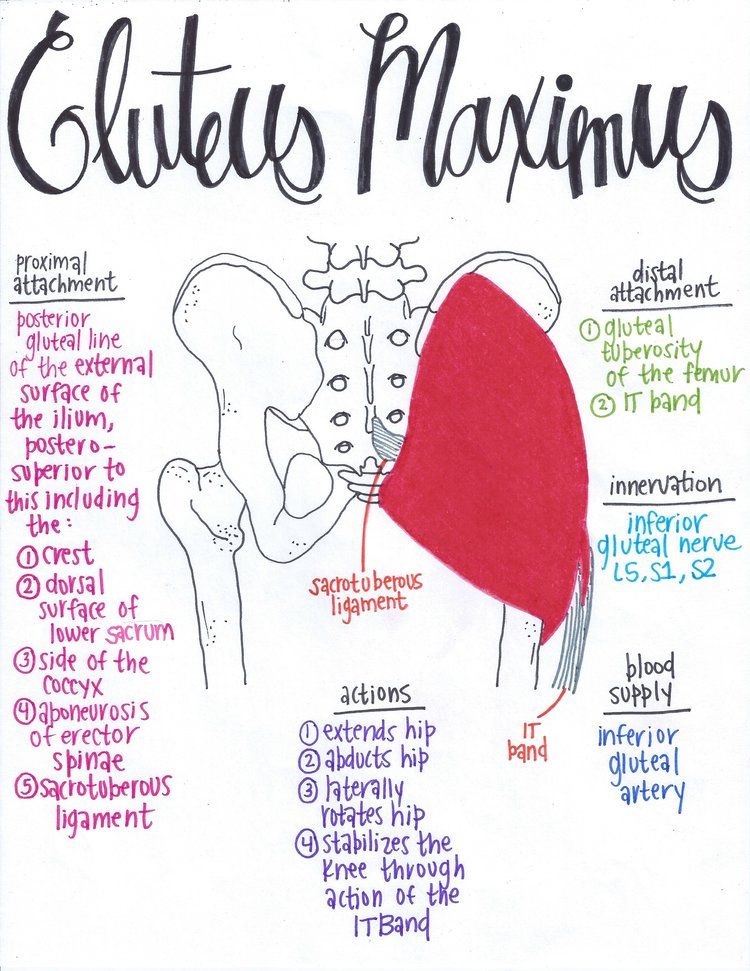 1)origin : Lateroposterior surface of sacrum and coccyx, Gluteal surface of ilium, Thoracolumbar fascia, Sacrotuberous ligament