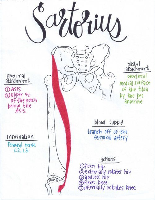 1) origin : ASIS (Anterior superior iliac spine) 전상장골극(앞위엉덩뼈가시), Upper 1/2 of the notch below the ASIS