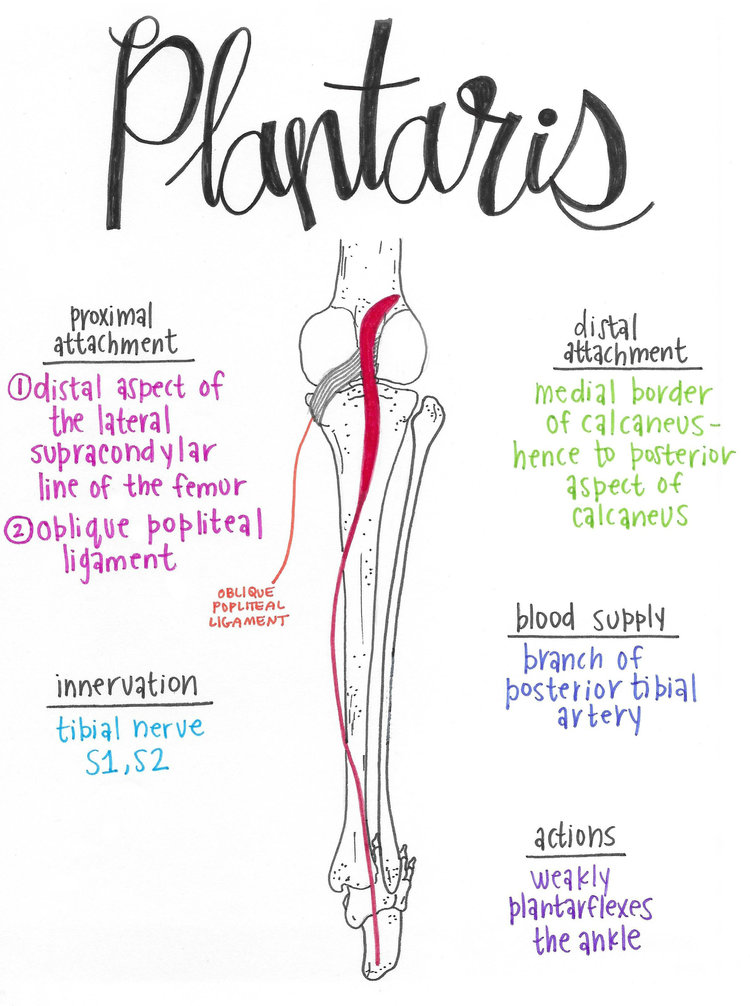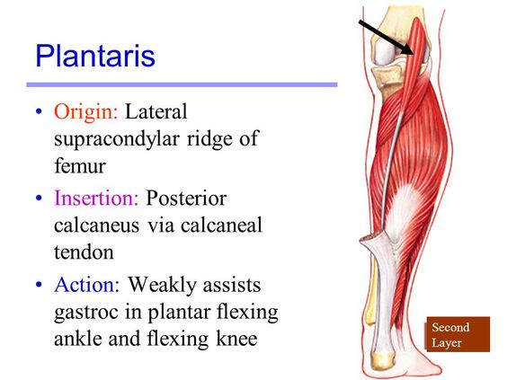 위의 세 근육(비복근,가자미근,족척근)의 정지는 아킬레스건으로 합쳐져 하나의 건으로 정지함.