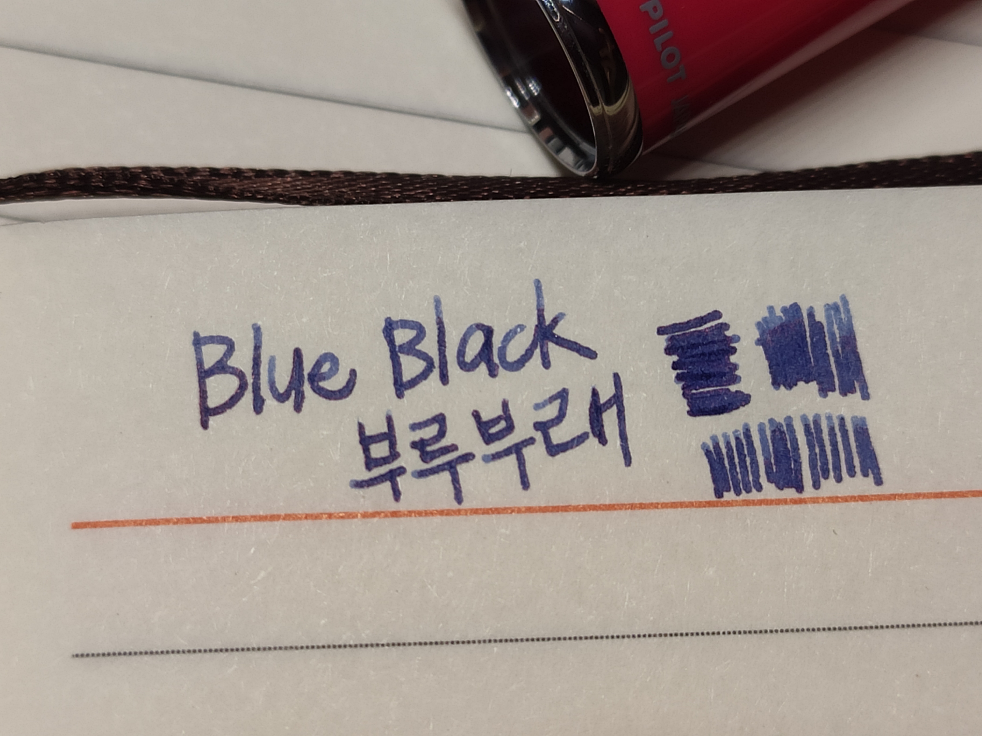 파이롯트 블루블랙 잉크 시필중입니다.
