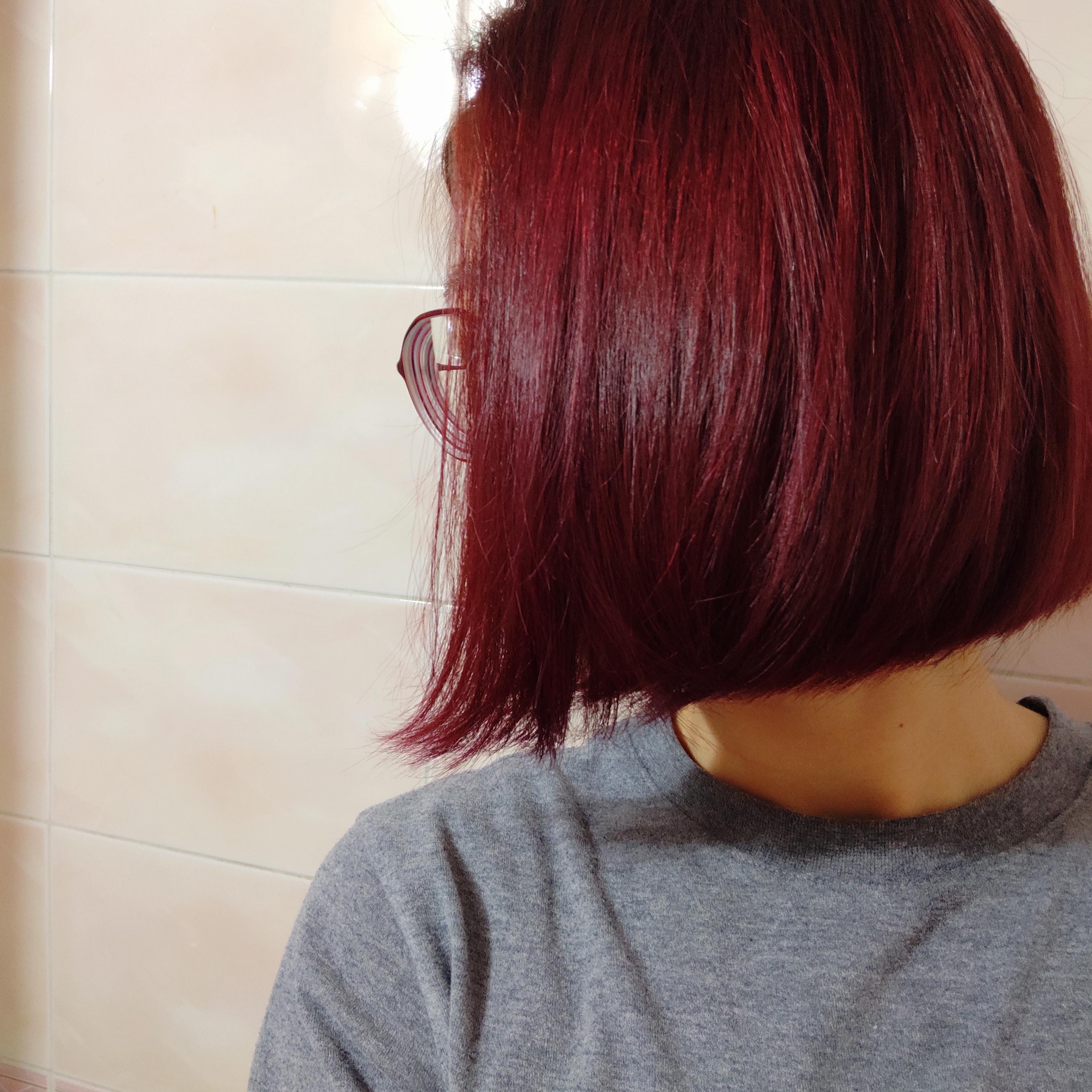 역시 탈색모에는 색감이 잘 나온다. 이게 하루 지나면 더 검붉게 잘 나온다.