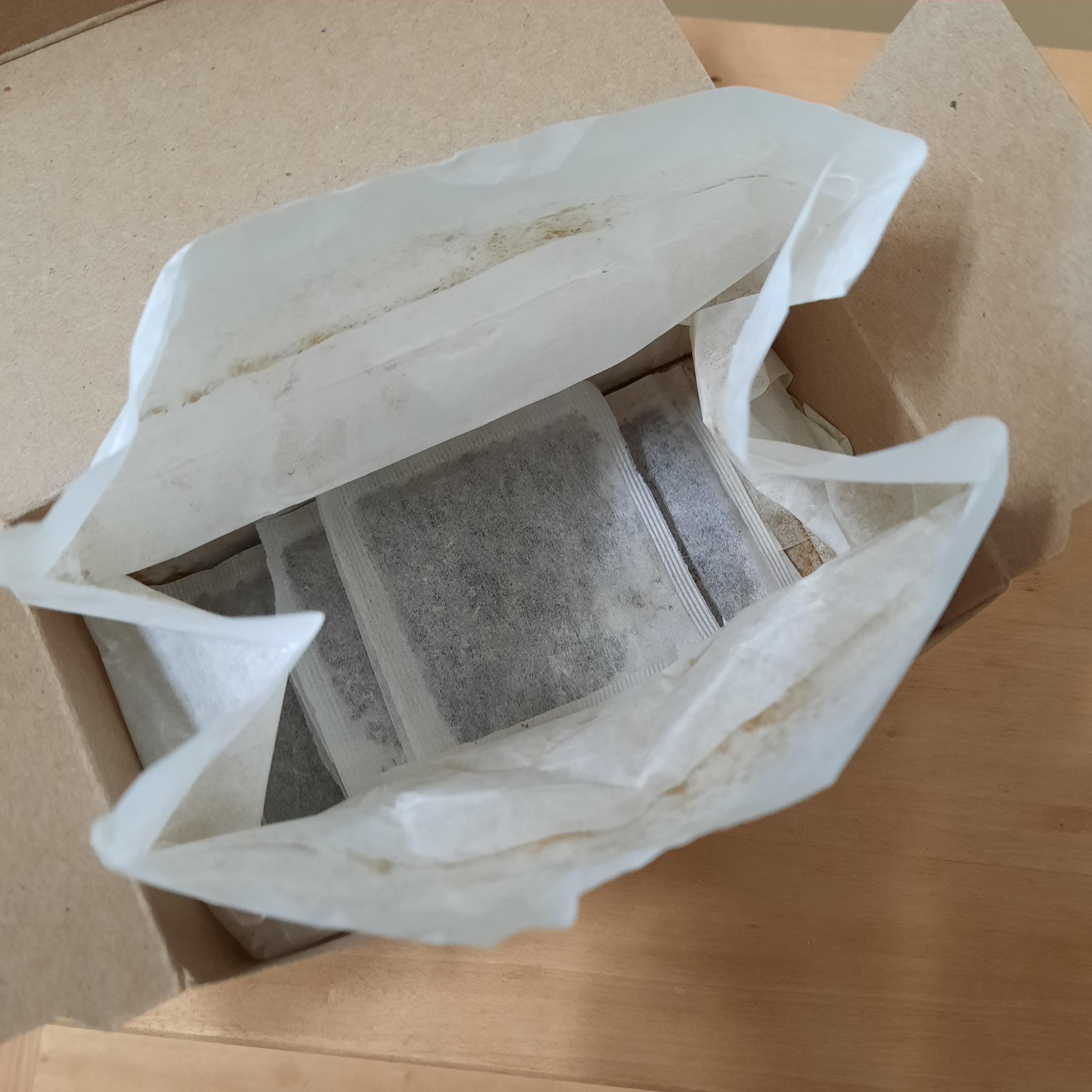 저 포장지 옆에 붙은 검녹색 가루들은 페퍼민트 잎 가루중에 작은 입자들은 밖으로 빠져나와서 이송 도중에 묻은 것. 종이로 낮개 포장보다가 이런 벌크형을 보니까 놀랬음..