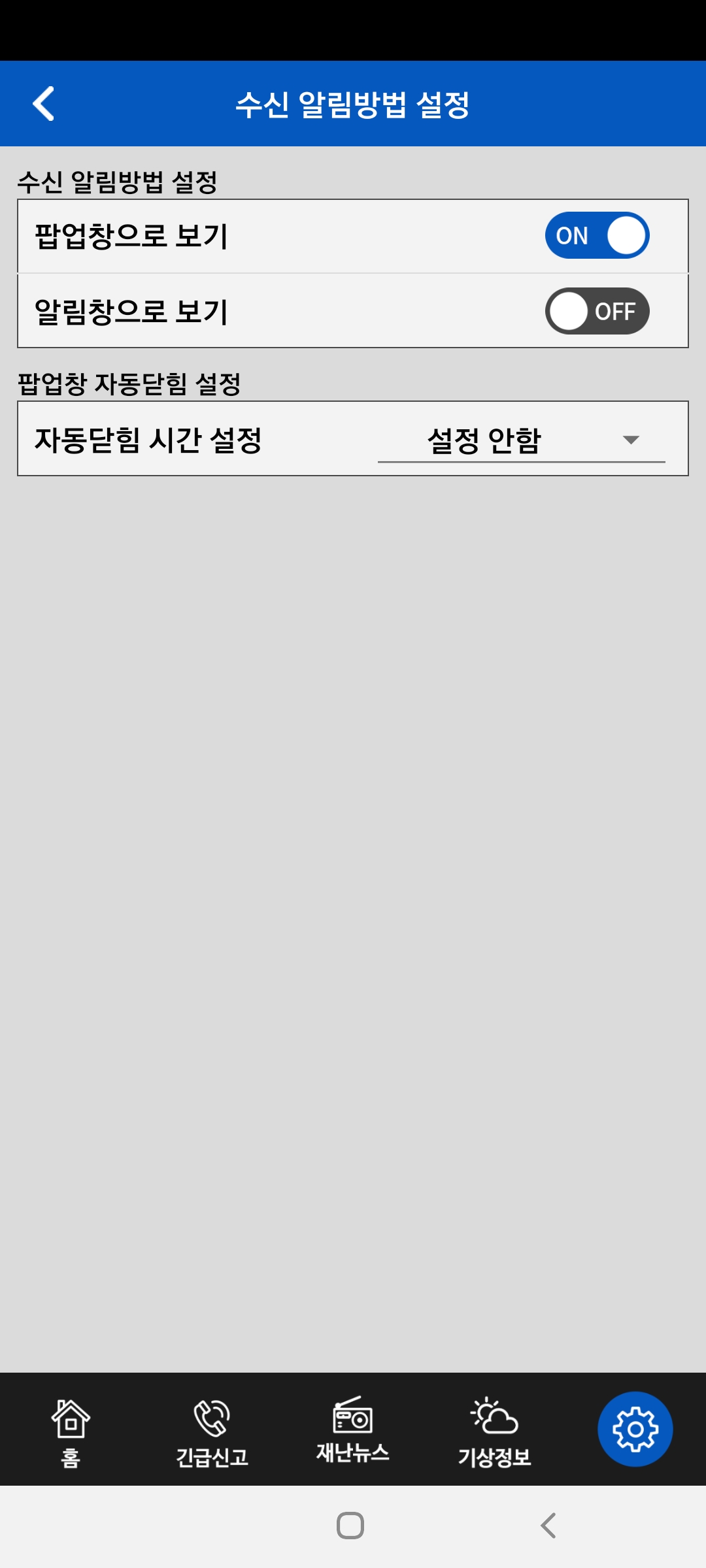 5. '환경설정 -> 수신 알림방법 설정' 에 들어가서 팝업창으로 보기와 알림창으로보기 둘중에 하나를 선택한다.
