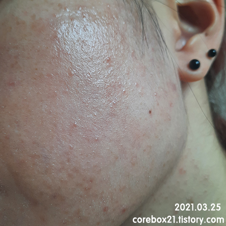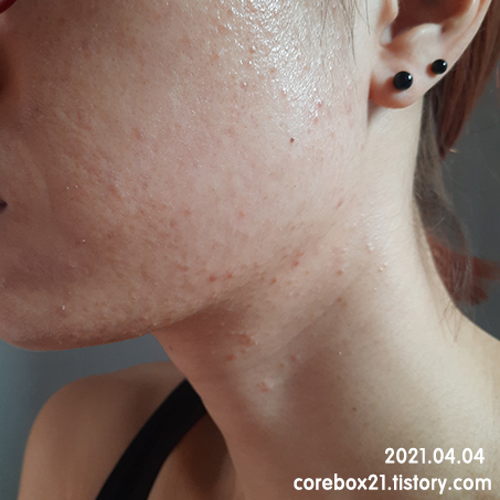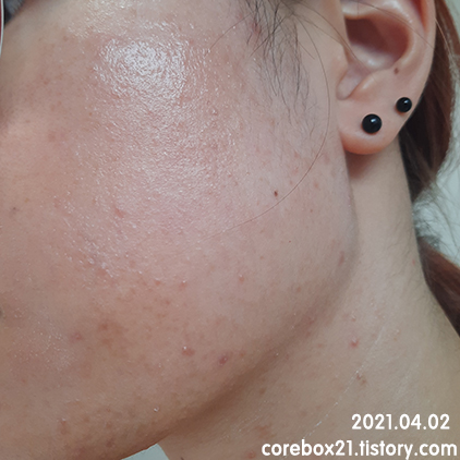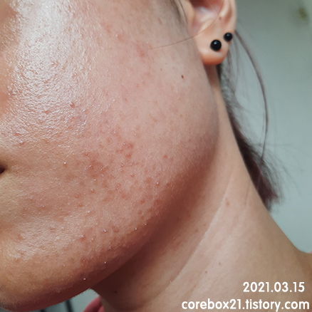 슬슬.. 큰것들은 없어지고 있다. 안색이 조금 좋아지고 붉은기가 많이 잡히기 시작했다. 아마 30일동안 발랐을 때 3일정도 빼고는 매일 자기전에 발랐다.