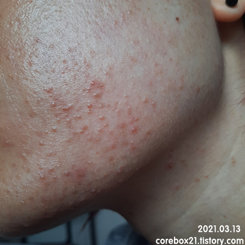 한달 다 되었다. 생각보다 피부가 많이 호전되었다. 물론 흉터나 이런건 진전이 없지만 일단 좁쌀여드름 개체수가 많이 줄어들었다. 만져보면 확실히 달라졌음을 느낀다.