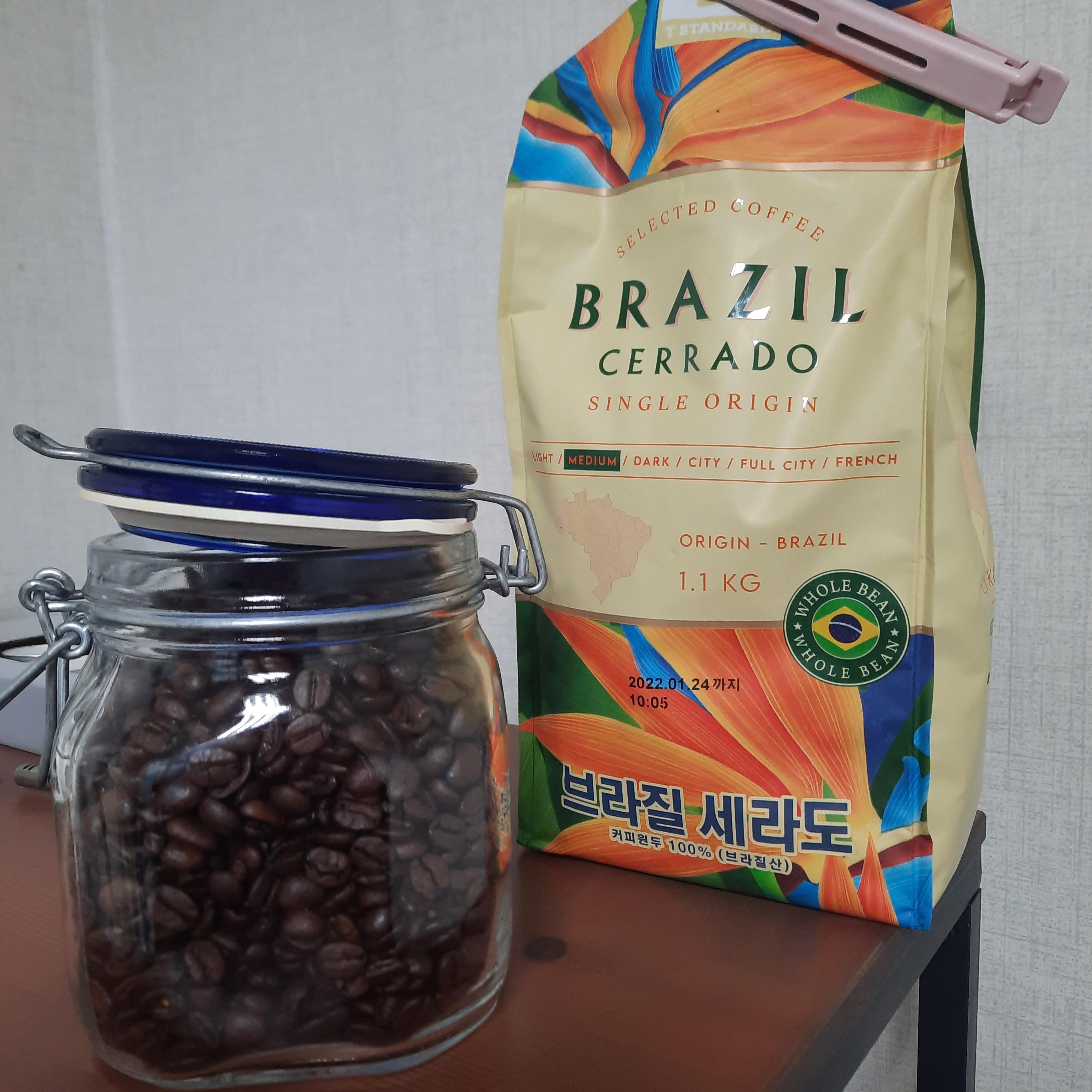 오늘 둔근해가 넣을 원두는 브라질 세라도! 트레이더스에서 구매해땅.