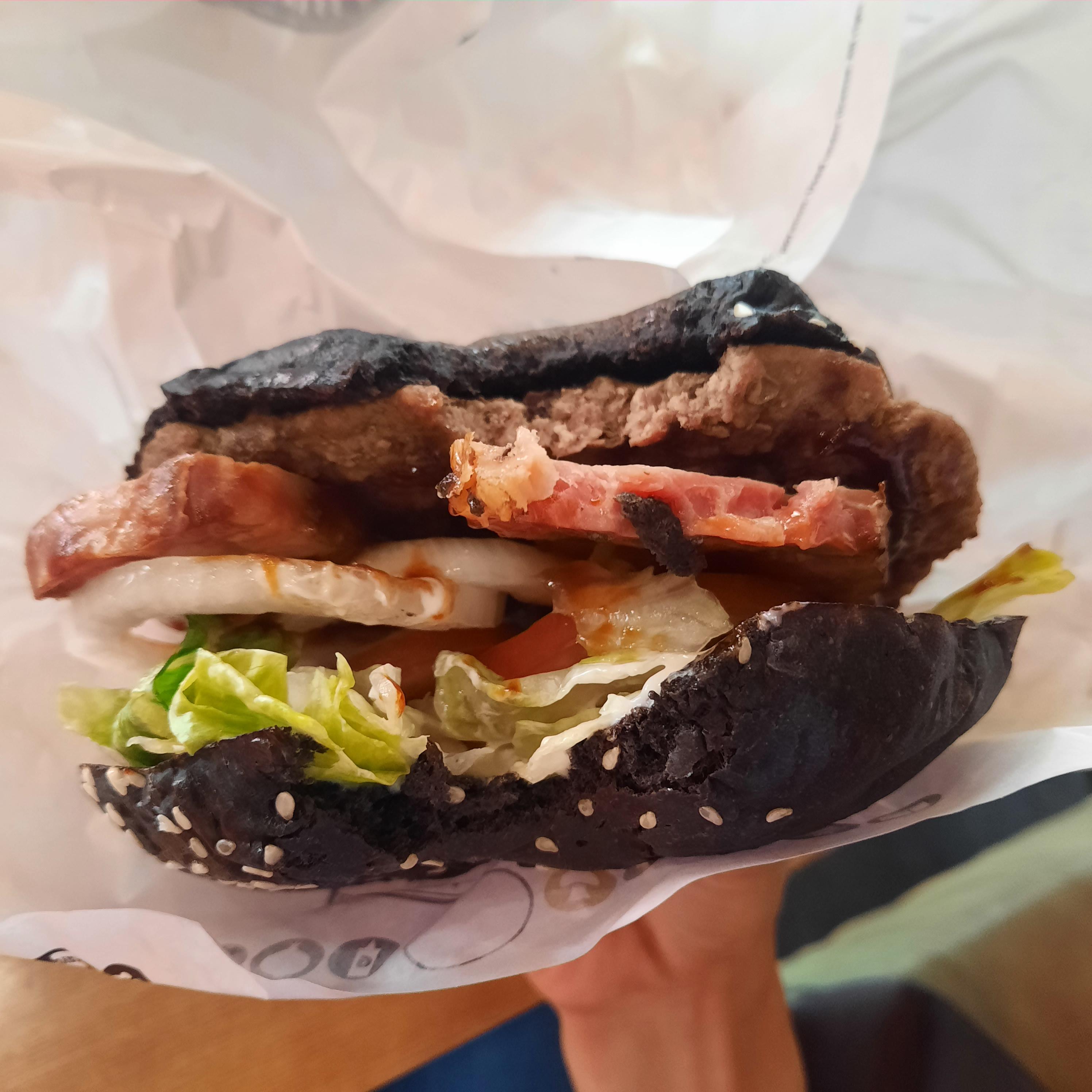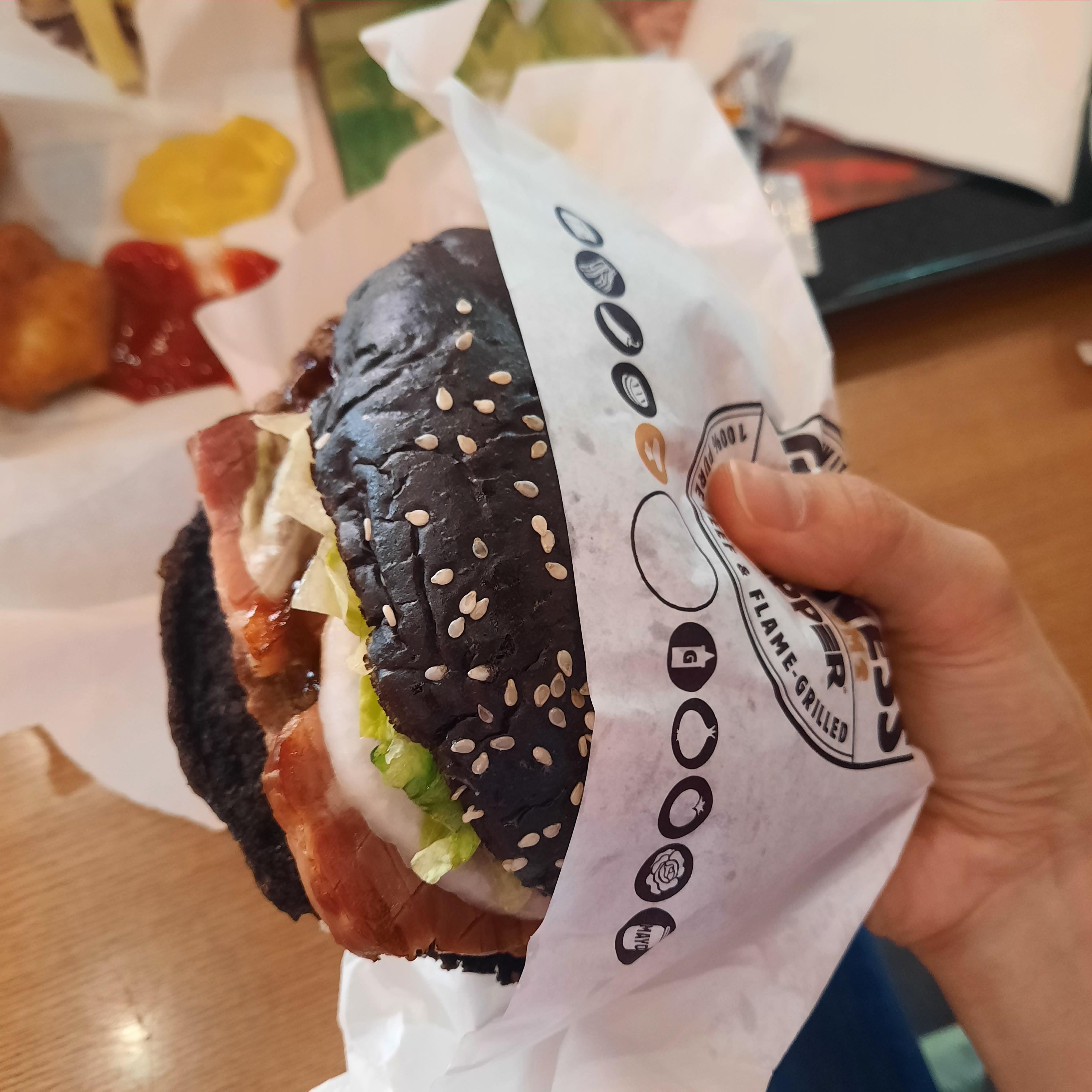 기네스통베이컨와퍼와 통베이컨와파의 차이는 번(빵) 차이니 맛의 큰 차이는 없는듯. 난 잘 모르겠더라.