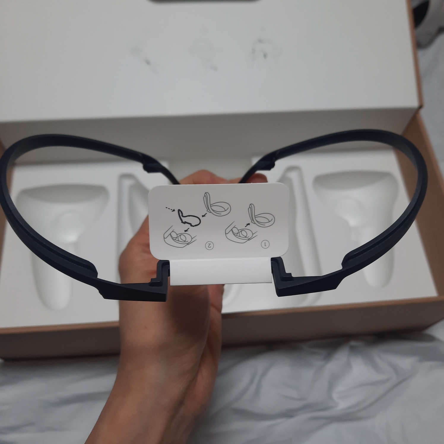 메가메들을 위한 안경 거치대../ 이걸 뭐라 부르지 아무튼 본품에 있는 가드를 빼고 저거를 다시 꼽고 다시 가드를 붙이면 안경용 vr이 됨 ㅇㅇ 나는 이거 하고 안경 껴서 해봤는데 눈과 렌즈 사이에 공간이 좀 더 생겨서 안경이 렌즈에 부딪히지 않음. 근데 그분은 자꾸 안경이 눌린다고 함 ㅜㅜ 속눈썹이 안경알에 다 붙는다고ㅠㅠ 님 면상은 안와상융기가 확실한데 어찌하여 서양인들 기준으로 나온 퀘스트2 얼굴형이랑 안맞냐? 도대체 왜?