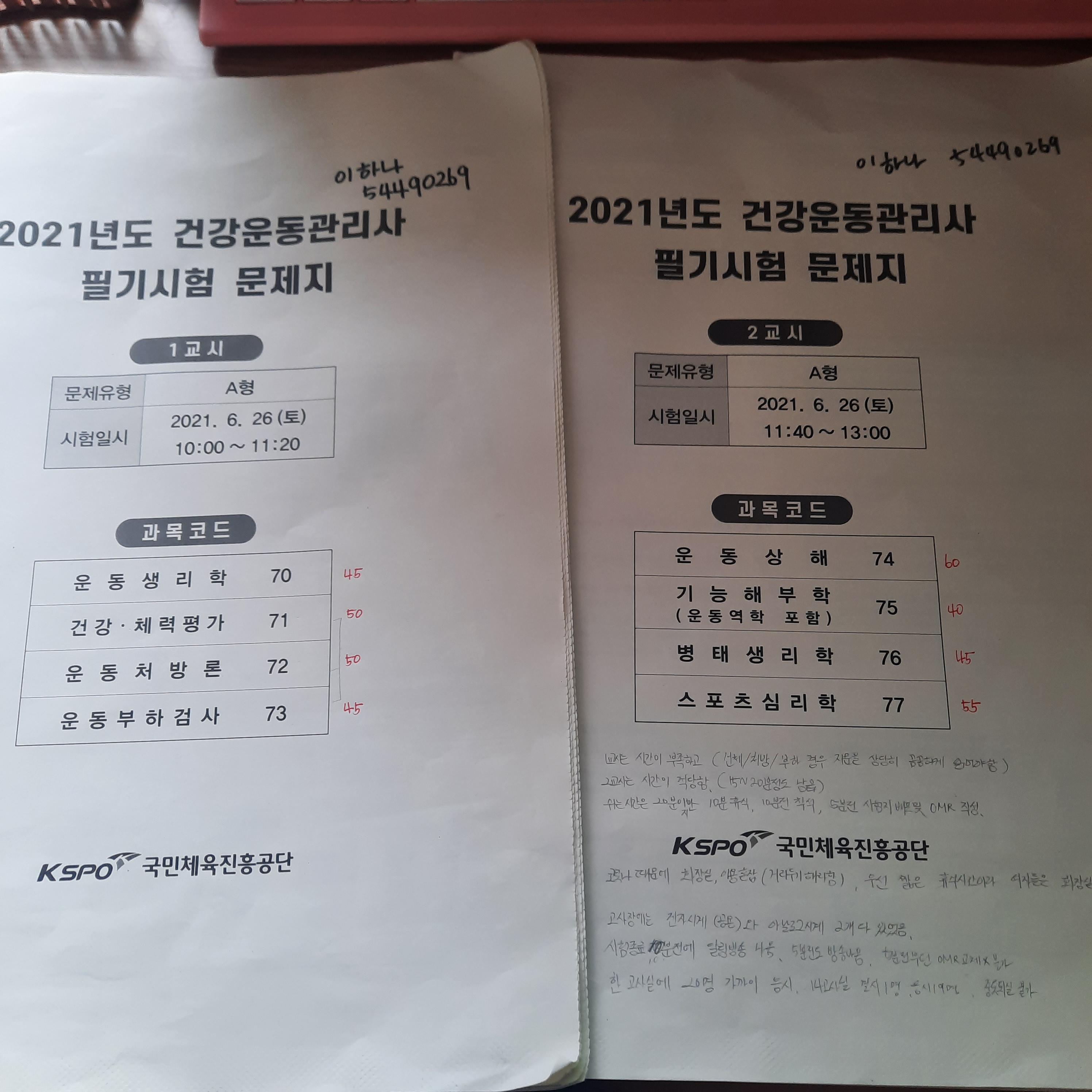 - 21년 초에 체육학사를 취득했고 학수고대하던 건강운동관리사 첫 시험을 쳤눙데..