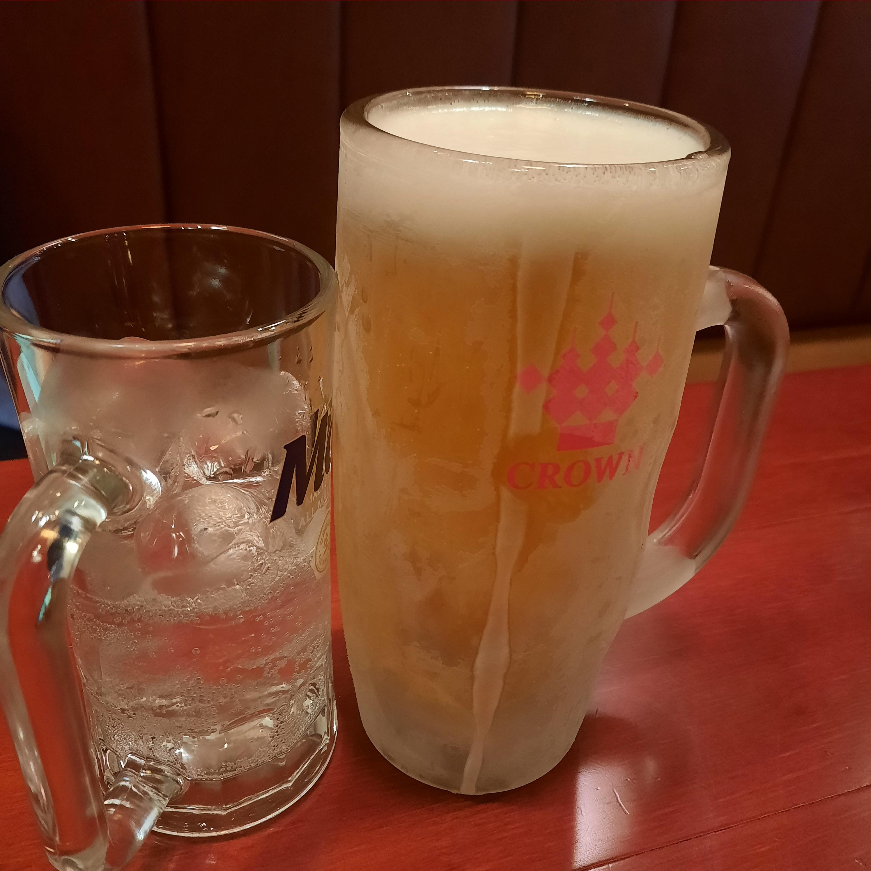 생맥 500cc 가 삼천오백원이다. 컵이 아주 그냥 얼려서 나오고 맥주가 매우 시원해보였다.