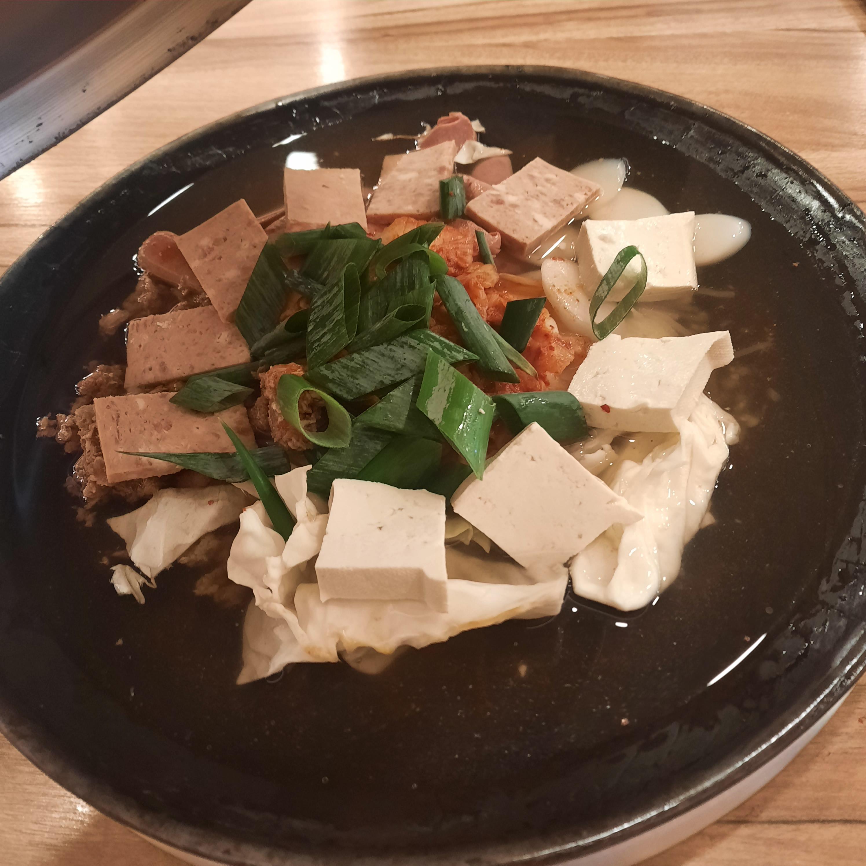 부대찌개의 구성은 그저 기본에 충실한 정도다. 두부, 가래떡, 스팸인지 런천미트인지 모를 햄ㅋㅋ 소세지, 양배추, 파, 김치, 간고기 이정도가 들어가 있는 기본 부대찌개다. 양이 적어보일순 있으나 테이블마다 구비되어져있는 육수 주전자에서 육수를 자주 부어주면 양은 매우 많아진다. 히히 생각보다 간이 강하니까 자주 부어줬다.