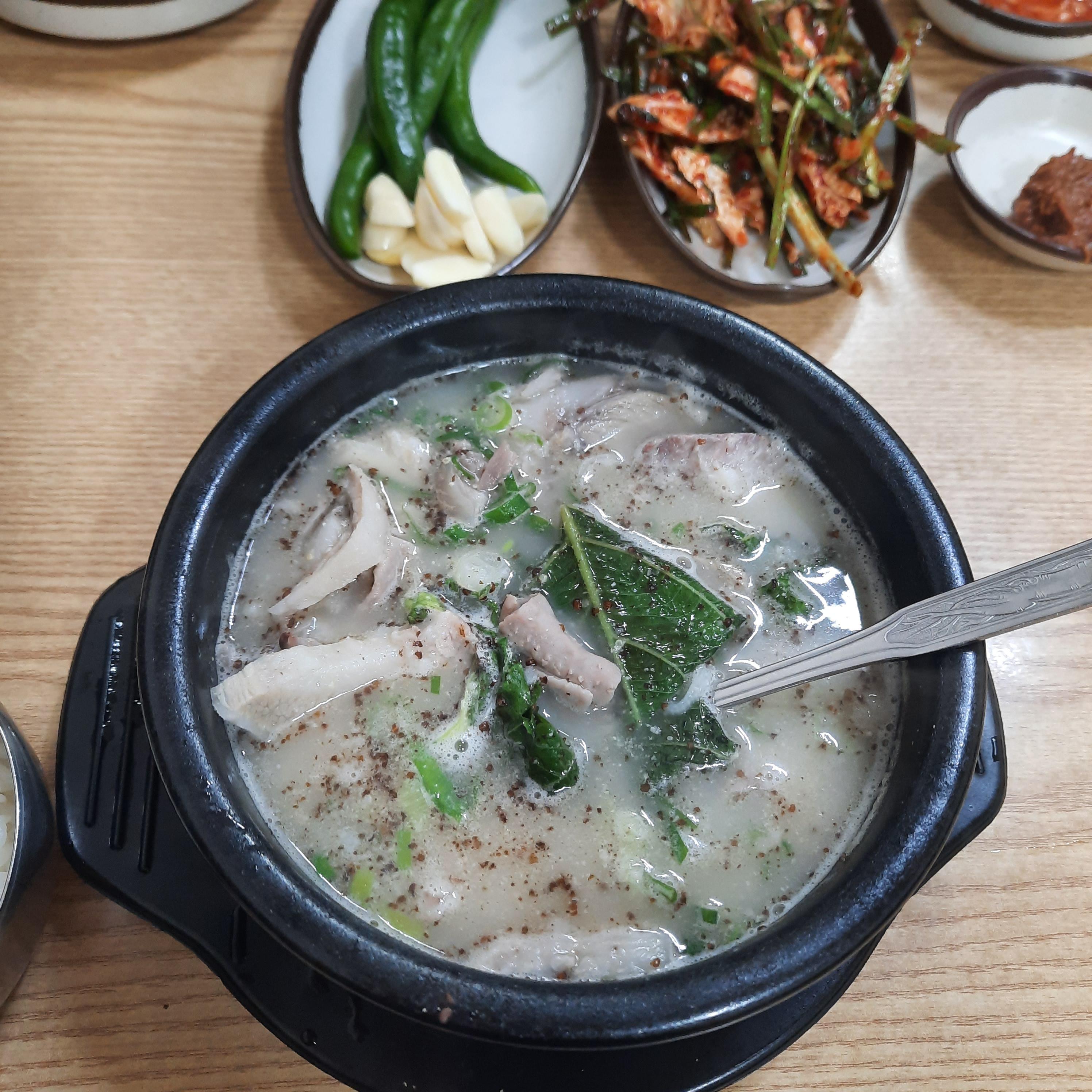 국밥에 부추 대신에 깻잎 넣는 집 처음 봄ㅋㅋㅋㅋㅋㅋ내가 깻잎을 고기에 싸먹을 때 좋아하는 편이라서 나쁘진 않았는데 이런 조합은 처음이라 어색어색; 그래도 나는 부추가 좋아.