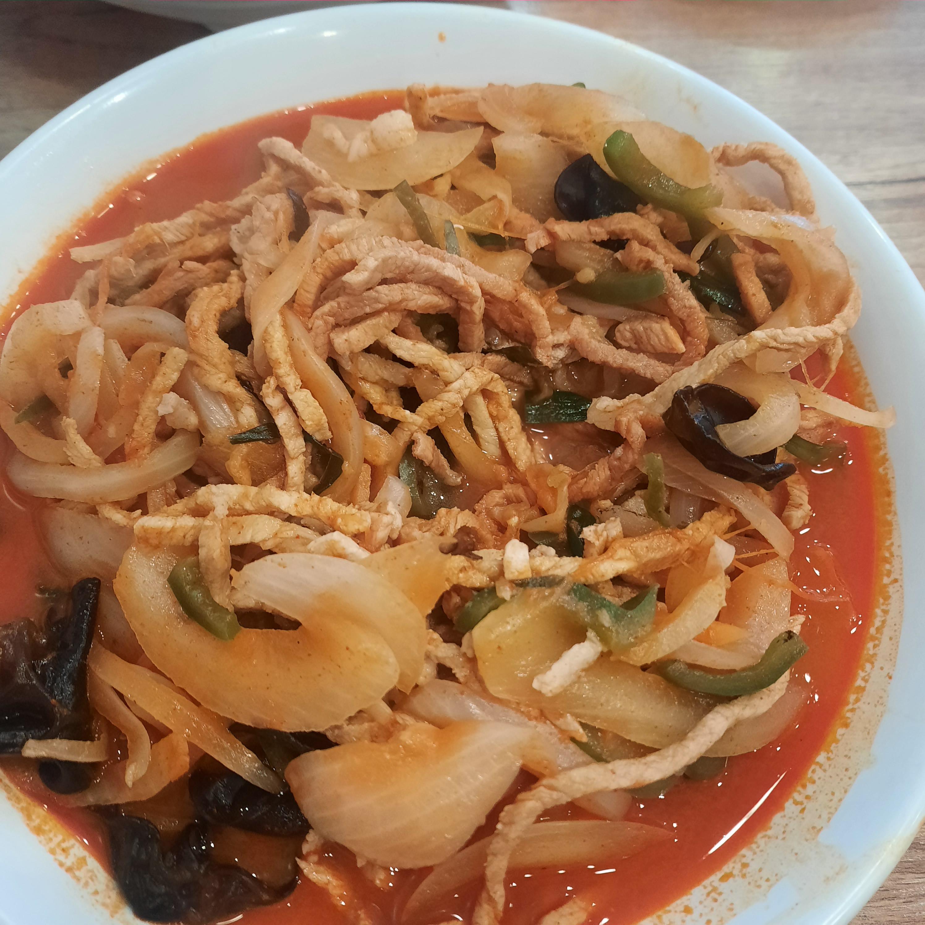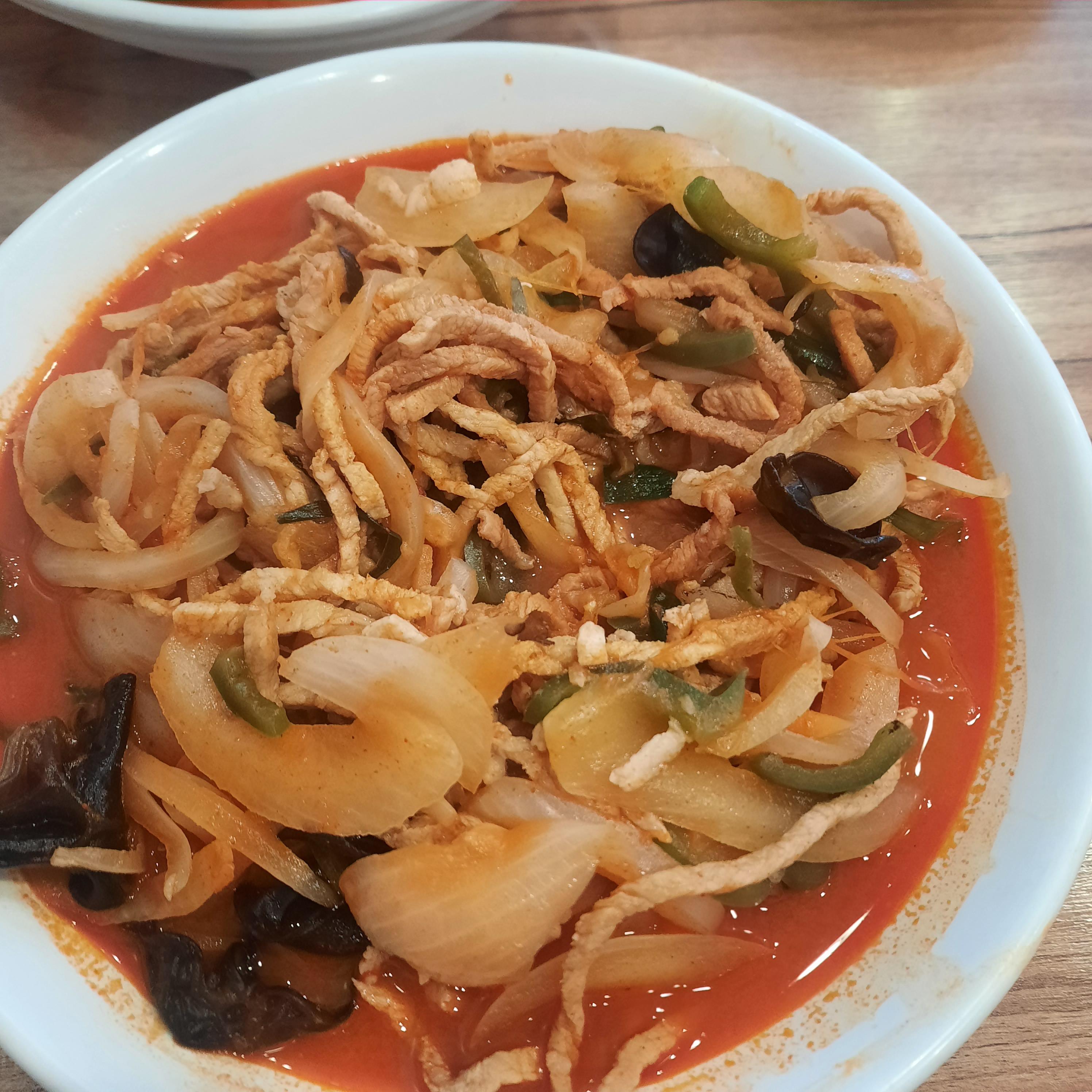 고기짬뽕은 9천원이다. 가격이 좀 있는만큼 고기는 확실히 많이 있었다. 이 집은 목이버섯이랑 피망이 있는게 특이했다. 그리고 양파는 볶은 양파라는 느낌보다는 그냥 생양파 같은 느낌이 났다.