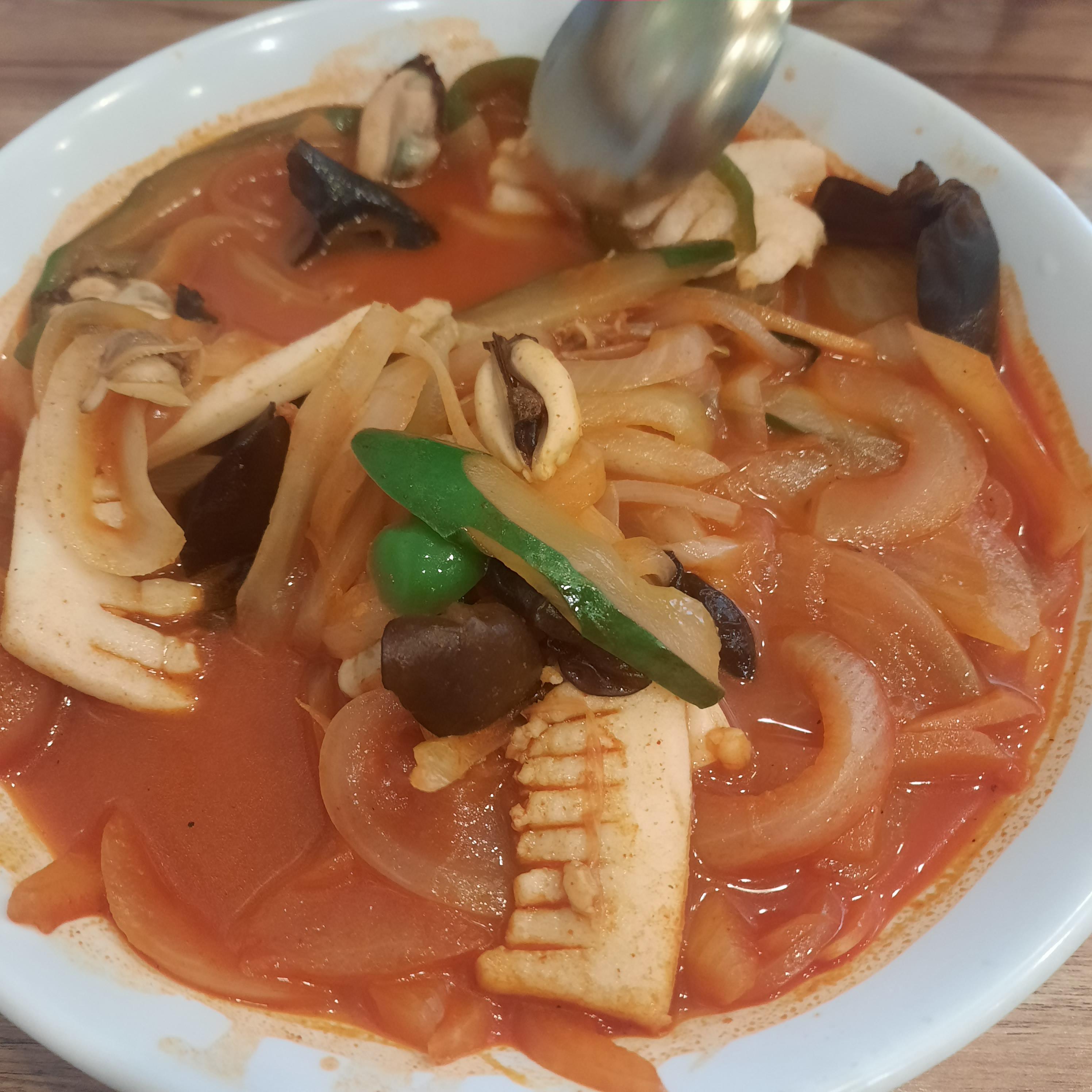 짬뽕에 오이가 들어감.. 오이로 시원한 맛을 내려한 것 같은데 우리 입맛에는 영 꽝이었다... 그 짬뽕 특유의 매운맛의 꾸덕함이 음슴.