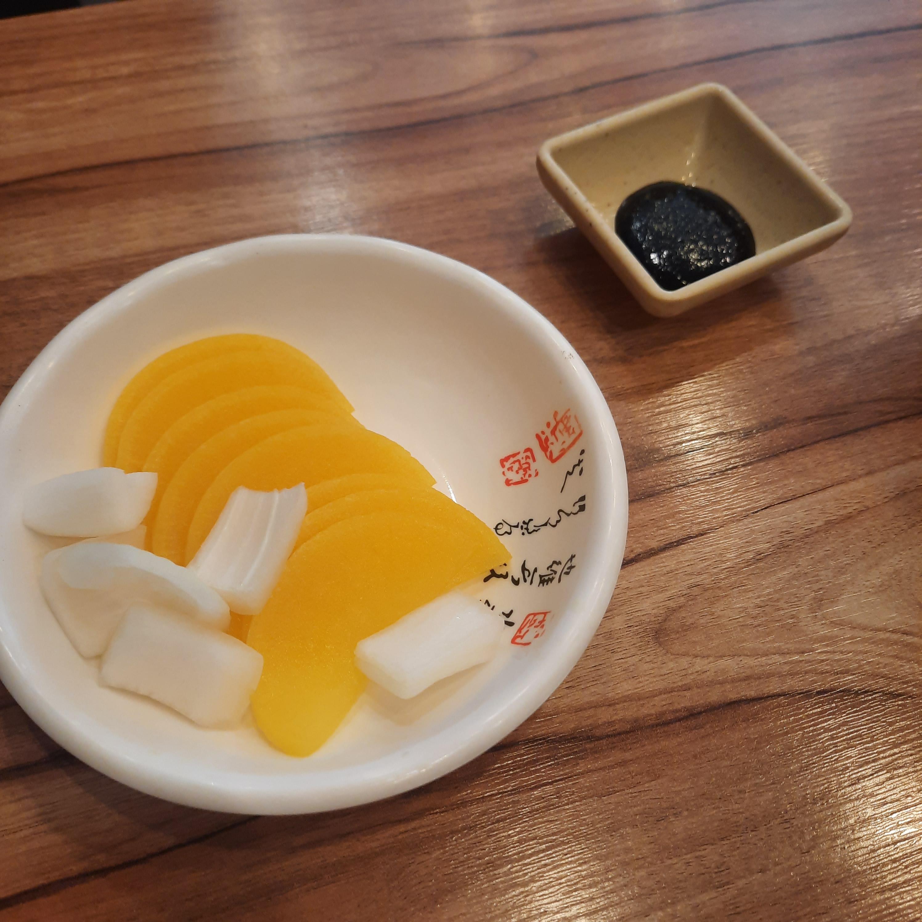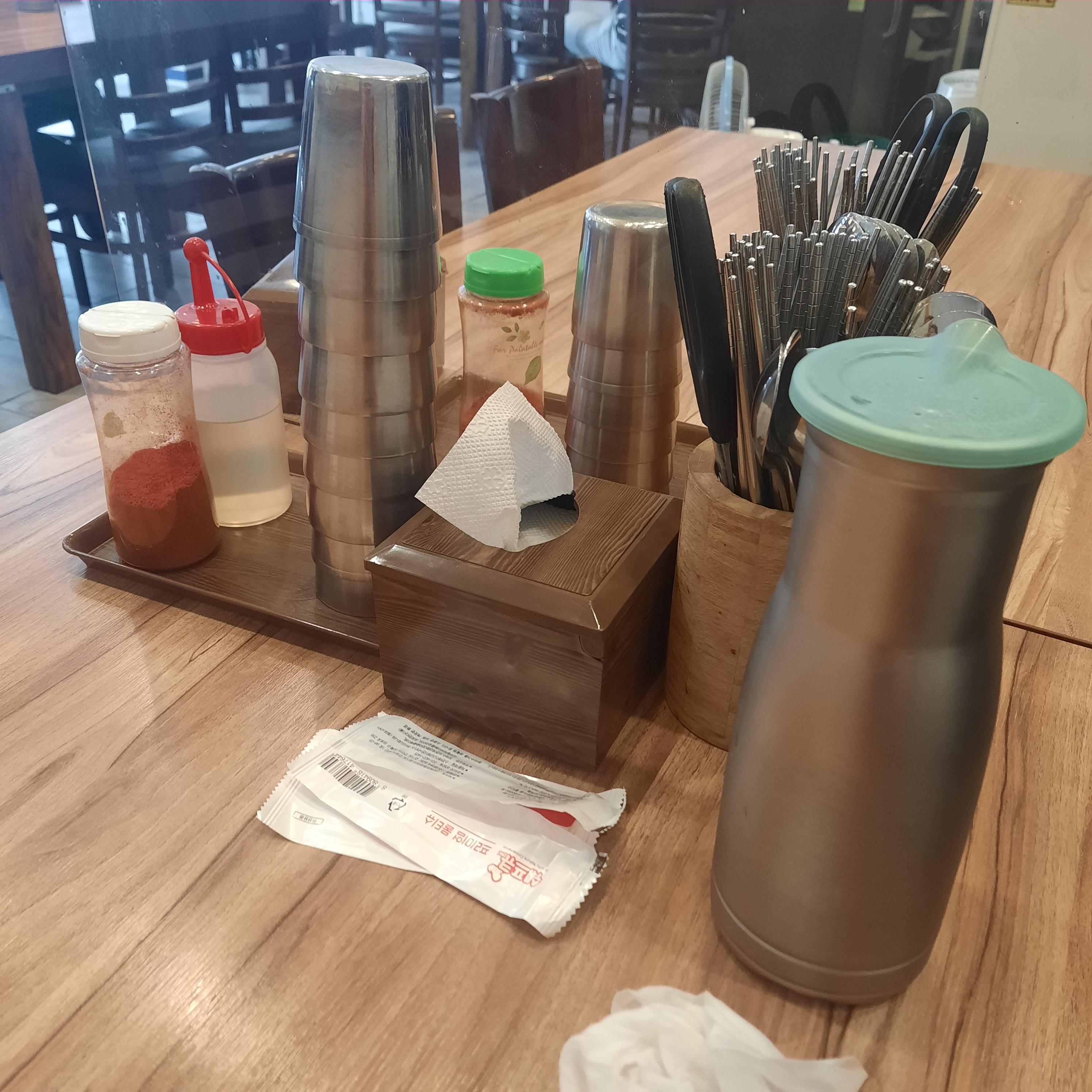 음 일단 큐알코드 찍 하고 입장 후 주문을 했다. 식탁 기본 세트은 이러하다.