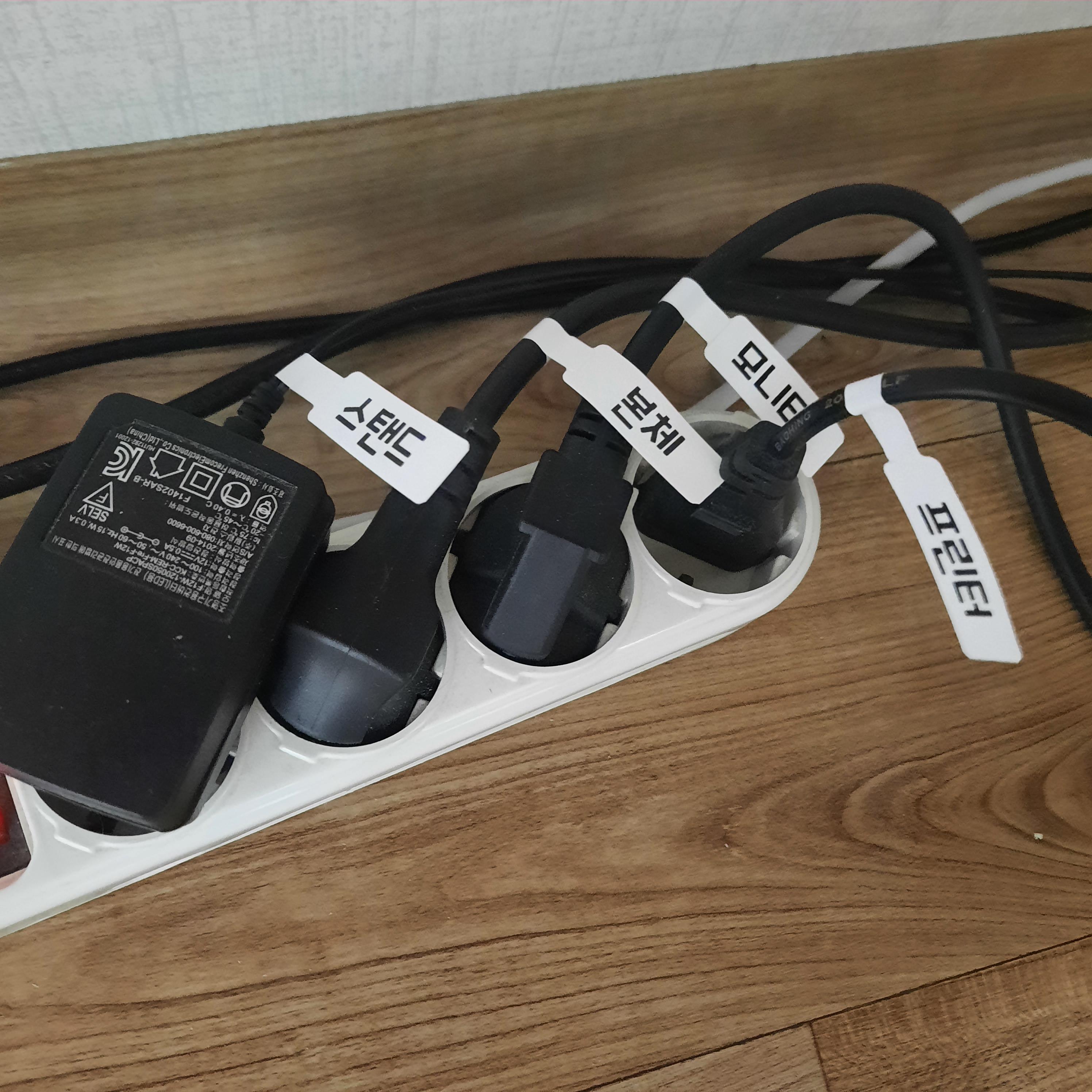충전선도 따고 있고 라벨기를 계속 쓰면서 드는 비용은 라벨지를 사는 비용말곤 없다. 몰랐는데 열감지식이라 레이저로 쏴서 라벨지를 태워서 글씨를 세기는게 원리더라. 그래서 검정색밖에 안나온다. 싱기방기